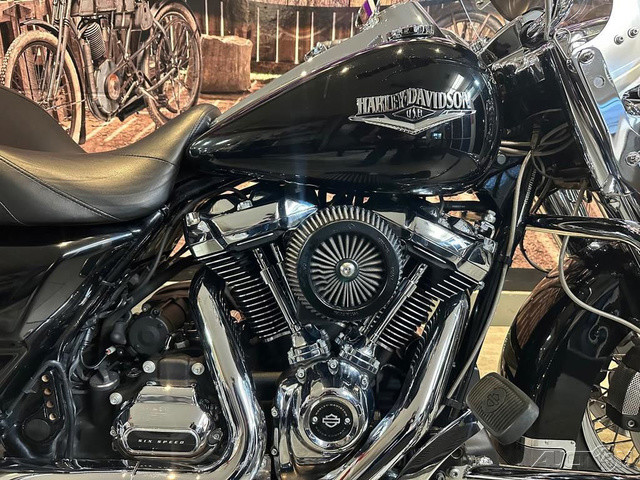 ROAD KING® This is where stripped down, nostalgic style meets the performance and versatility of a modern Harley-Davidson® touring machine. EVEN YOUR EYES CAN’T STOP WANDERING ON THIS MACHINE Hiawatha Headlamp and Nacelle Born in the ‘60s, when chrome ruled the streets. Big and commanding, it’s built with the latest in materials and technology for a longer distance high beam and wider low beam. Milwaukee-Eight V-Twin Engine A powerful, smooth-running engine with crisp throttle response and a pure, soul-satisfying rumble. Responsive Suspension High-performing front and rear suspension, with easily hand-adjustable rear shocks, put you in control of a plush ride. Cast Aluminum Impeller Wheels A 17-inch cast aluminum, 10-spoke Impeller wheel in the front, and a 16-inch Impeller to match in the back. One-Touch Opening Saddlebags Tight on the outside, roomy on the inside. The hinges are simple and clean and the lids open with one touch of one hand. Reflex™ Linked Brembo Brakes with optional ABS The front and rear brakes are electronically linked to provide exactly the right amount of brake to each tire no matter the road condition. No matter how good you are, this will make you a better rider.