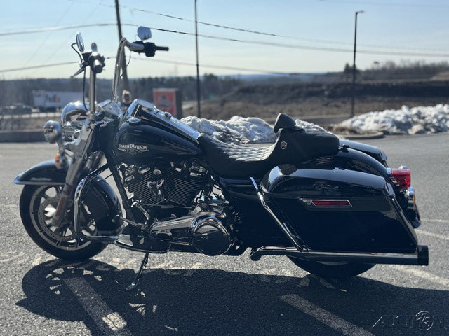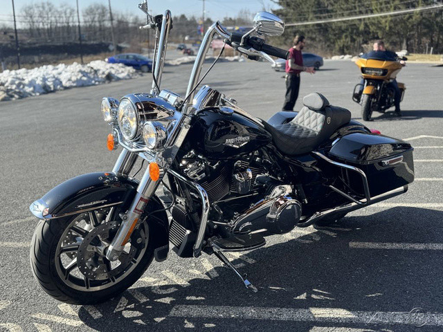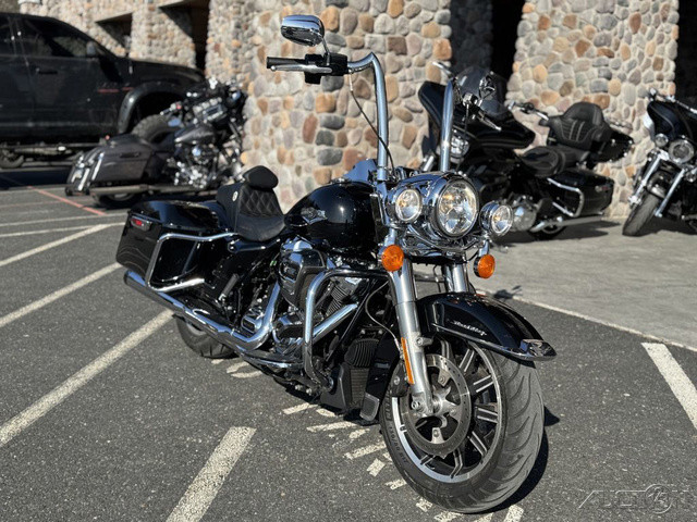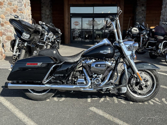 2018 Harley-Davidson® Road King®This is where stripped down, nostalgic style meets the performance and versatility of a modern Harley-Davidson® touring machine.Features may include:Hiawatha Headlamp and NacelleBorn in the ‘60s, when chrome ruled the streets. Big and commanding, it’s built with the latest in materials and technology for a longer distance high beam and wider low beam.Milwaukee-Eight® V-Twin Engine A powerful, smooth-running engine with crisp throttle response and a pure, soul-satisfying rumble. Responsive Suspension High-performing front and rear suspension, with easily hand-adjustable rear shocks, put you in control of a plush ride.Cast Aluminum Impeller® WheelsA 17-inch cast aluminum, 10-spoke Impeller® wheel in the front, and a 16-inch Impeller® to match in the back.One-Touch Opening SaddlebagsTight on the outside, roomy on the inside. The hinges are simple and clean and the lids open with one touch of one hand.Reflex™ Linked Brembo® Brakes with optional ABSThe front and rear brakes are electronically linked to provide exactly the right amount of brake to each tire no matter the road condition. No matter how good you are, this will make you a better rider.