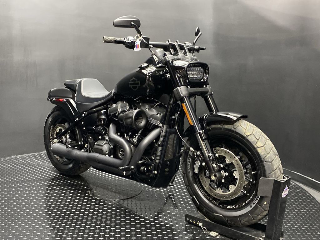 YOU ARE LOOKING AT A 2018 HARLEY DAVIDSON SOFTAIL FAT BOB (FXFB) WITH 4,121 MILES ON IT. IT IS VIVID BLACK IN COLOR AND POWERED BY A 1746CC (107") FUEL INJECTED MILWAUKEE EIGHT ENGINE AND 6 SPEED TRANSMISSION. THE BIKE COMES WITH 1 KEY, 1 FOB, AND FACTORY SECURITY SYSTEM. THERE ARE SOME EXTRAS ON THE BIKE WHICH INCLUDE BASSANI 2 IN 1 EXHAUST ($985.95), NESS AIR CLEANER ($314.95), VANS GRIPS ($79.95), MIRRORS ($99.95), AND DERBY COVER ($58.95). THERE ARE NO SCRATCHES, DENTS, OR DINGS THAT I CAN FIND. THE CHROME AND ALUMINUM HAVE TOUCHUPS ON THE FORK LOWERS, BRAKE PEDAL, RIGHT PEG, AIR CLEANER, EXHAUST, AND PRIMARY. THE TIRES HAVE GOOD TREAD LEFT ON THEM.