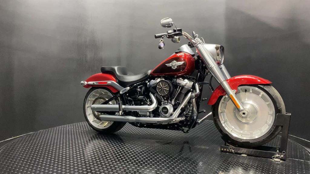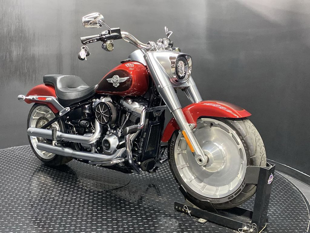 YOU ARE LOOKING AT A 2018 HARLEY DAVIDSON FAT BOY 114 (FLFBS) WITH 6,830 MILES ON IT. IT IS WICKED RED AND TWISTED CHERRY IN COLOR AND POWERED BY A 1868CC (114") FUEL INJECTED MILWAUKEE EIGHT ENGINE AND 6 SPEED TRANSMISSION. THE BIKE COMES WITH ABS BRAKES, CRUISE CONTROL, 2 KEYS, 2 FOBS, AND FACTORY SECURITY SYSTEM. THERE ARE SOME EXTRAS ON THE BIKE WHICH INCLUDE VANCE & HINES SLIP-ON MUFFLERS ($934.95), HIGH FLOW AIR CLEANER ($299.95), BRAKE/CLUTCH LEVERS ($79.95), TIMER COVER ($28.95), AND SHIFTER LINKAGE ($99.95). THERE ARE NO SCRATCHES, DENTS, OR DINGS THAT I CAN FIND. THE CHROME AND ALUMINUM ARE IN GOOD CONDITION WITH THE EXCEPTION OF OXIDATION ON THE FORK LOWERS. THE TIRES HAVE GOOD TREAD LEFT ON THEM.