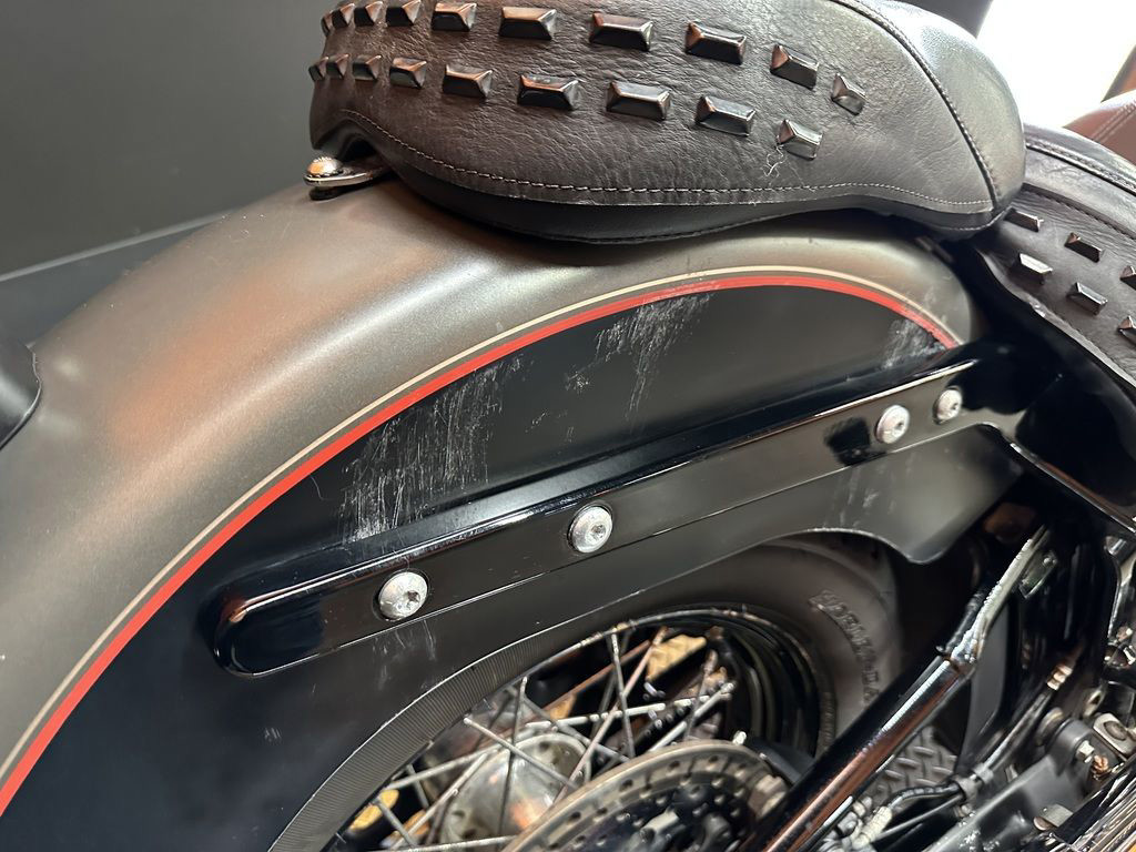 ONLY 23,111 MILES, 107" MOTOR, WINDSHIELD, CRASHBAR, HIGHWAY PEGS, KEYLESS START, ABS, SECURITY, CRUISE CONTROL, 6 SPEED TRANSMISSION, AND NEW TIRES! NICE BLACKED OUT 2-TONE SOFTAIL CRUISER!