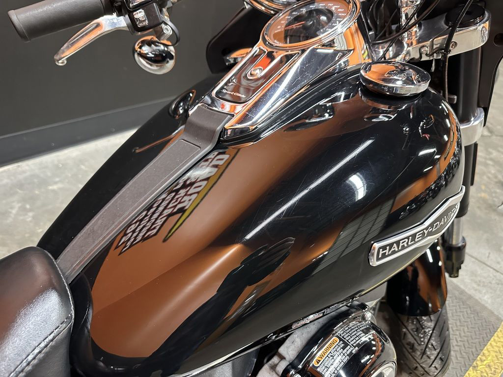 ONLY 12,010 MILES, $500 HD BOOM AUDIO BLUETOOTH SPEAKER SYSTEM, UPPER FAIRING, HARD BAGS, HD DAYMAKER LED HEADLIGHT, LED SIGNALS, ABS, CRUISE CONTROL, SECURITY, KEYLESS START, 107" MOTOR, 6 SPEED TRANS, AND NEW FRONT TIRE! CLEAN LOWER MILEAGE BLACKED OUT SOFTAIL CRUISER!