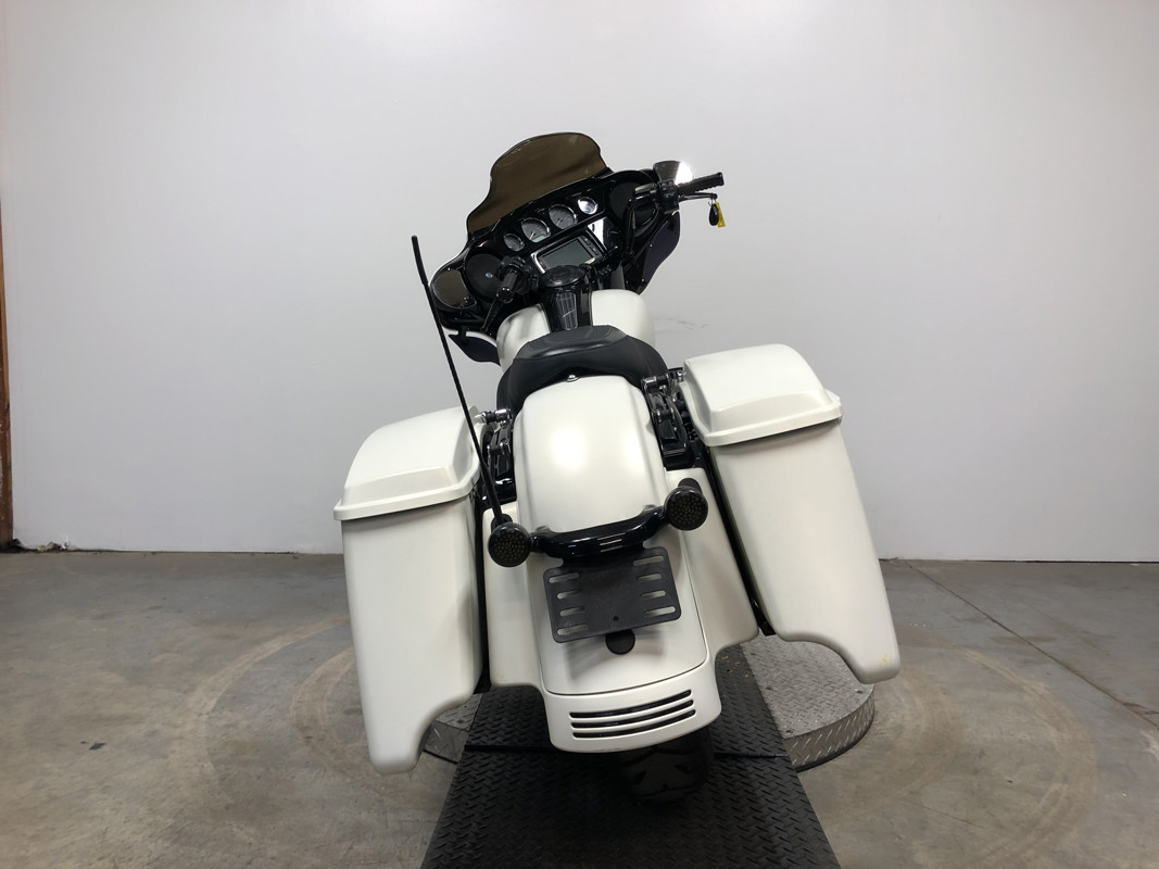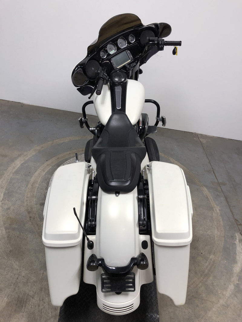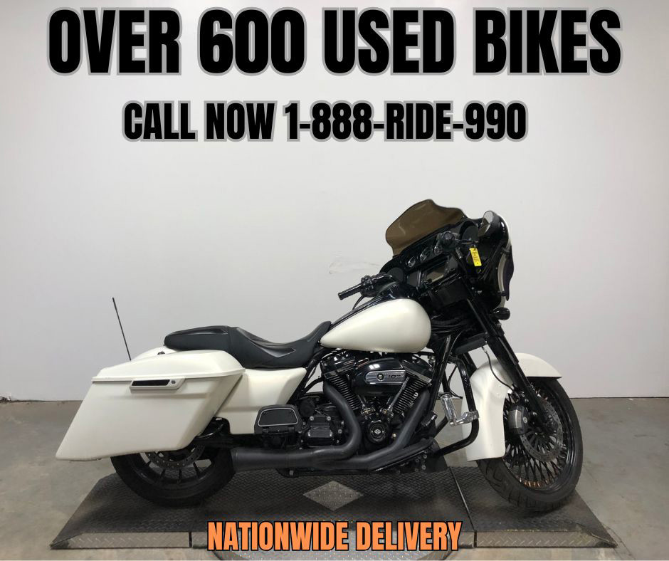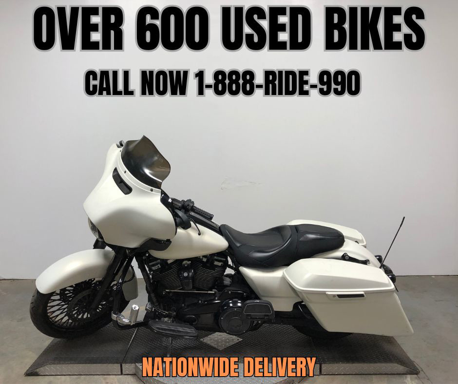 USED BIG WHEELED BAGGER FOR SALE WITH A 21 INCH FAT SPOKE WHEEL! TAKE A CLOSE LOOK AT THIS 2018 HARLEY STREET GLIDE IN HARD TO FIND COLOR "BONNEVILLE SALT PEARL" WITH BLACKOUT PACKAGE AND OVER $2,500 IN EXTRAS! STAND OUT FROM THE CROWD! BLACKOUT FRONT END, BLACKOUT MOTOR, BLACKOUT CONTROLS, BLACKOUT EXHAUST, BLACKOUT WINDSHIELD, OVERSIZED L.E.D SCREEN, BLUETOOTH STEREO, NAVIGATION SYSTEM, SECURITY SYSTEM, CRUISE CONTROL, HIGHWAY PEGS, EXTENDED BAGS, AND SHORTY EXHAUST! THIS ONE HAS IT ALL! THE 107 CUBIC INCH MILWAUKEE 8 MOTOR RUNS STRONG, EVERYTHING WORKS, NEEDS NOTHING! SOLD NEW FOR $26,000, BLUEBOOK IS $18,000! THIS ONE IS A DEAL!