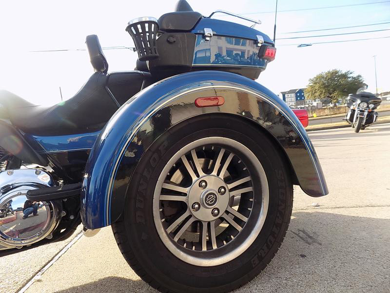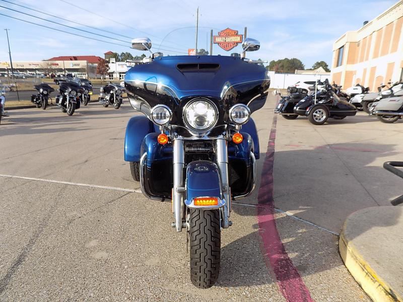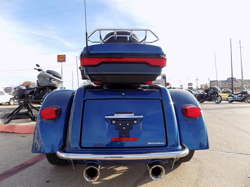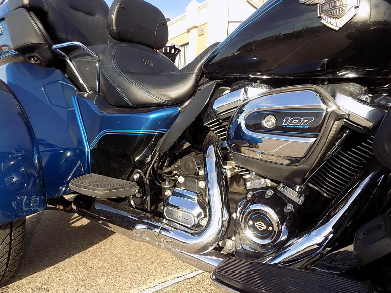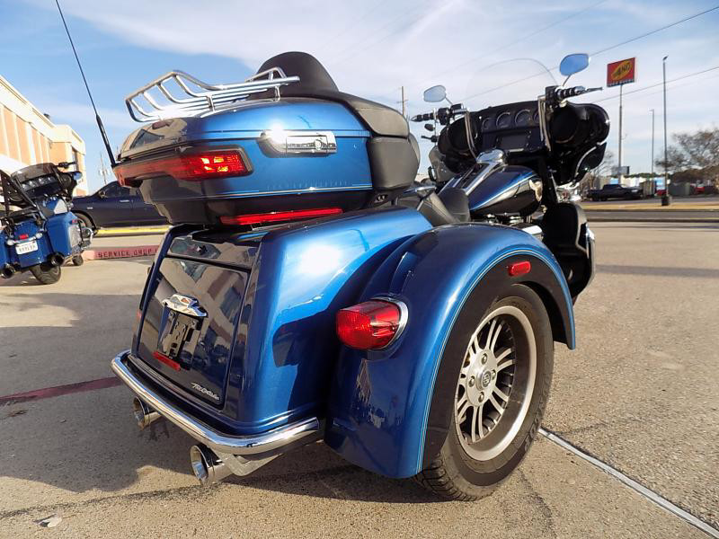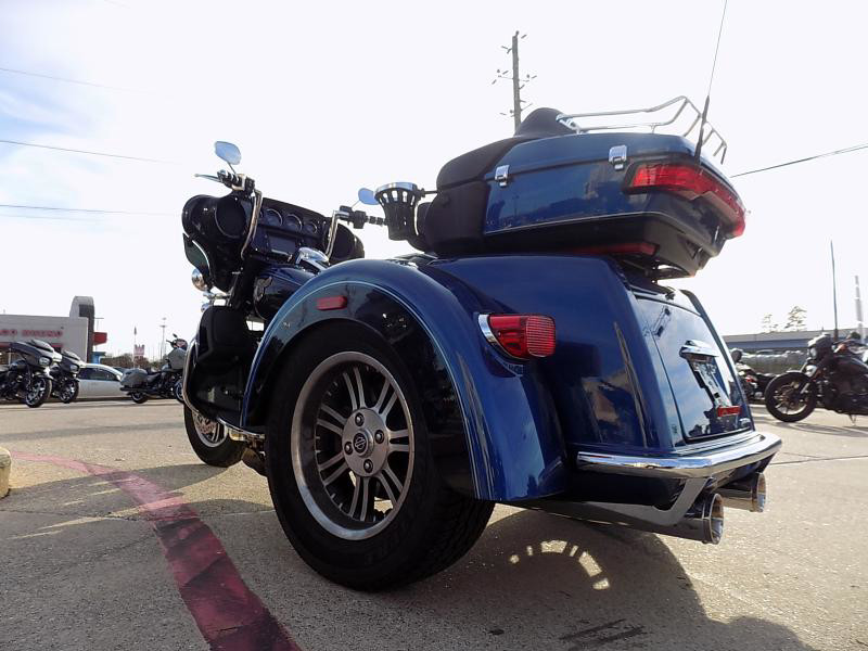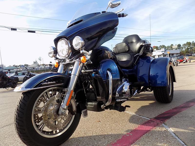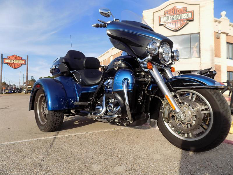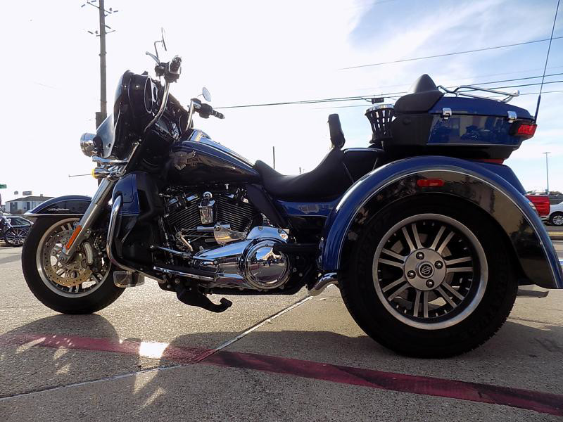 The 2018 Harley-Davidson Trike is a distinctive vehicle that combines the thrill of a motorcycle with the stability of three wheels. This particular model is perfect for those who yearn for the classic Harley-Davidson experience with an added twist of comfort and innovation. Its eye-catching exterior color, LGNDBLUSNGL/BLK, is striking, offering a unique blend of legendary blue paired with black accents that radiate a sleek and modern allure.