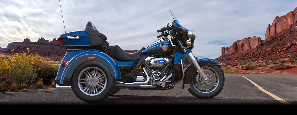 The Tri Glide Ultra motorcycle is everything you love about H-D touring, only on three wheels. You get every feature, starting with the power of its Twin-Cooled Milwaukee-Eight 107 engine. Other touring features include a four-speaker, premium BOOM! Box 6.5GT Infotainment System with GPS and color touchscreen, electronic cruise control and 6.8 cubic feet of storage space. Get into the middle of nowhere on this one, and you won’t be coming back anytime soon.