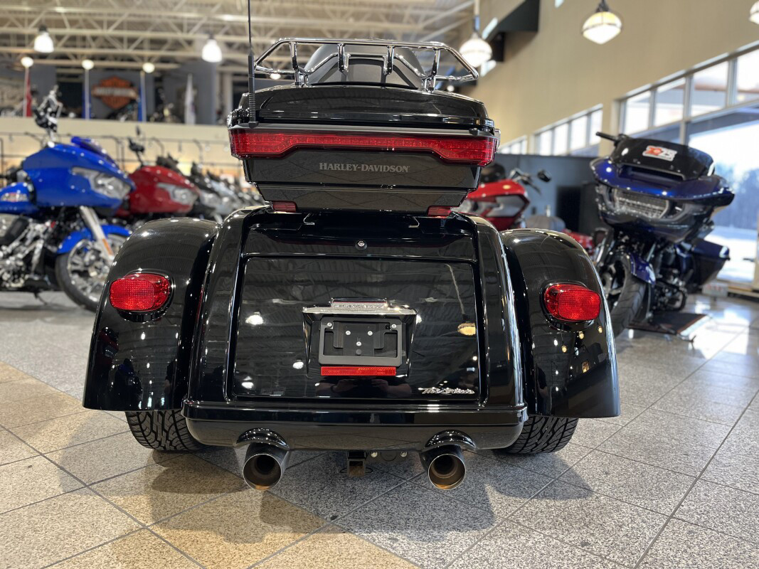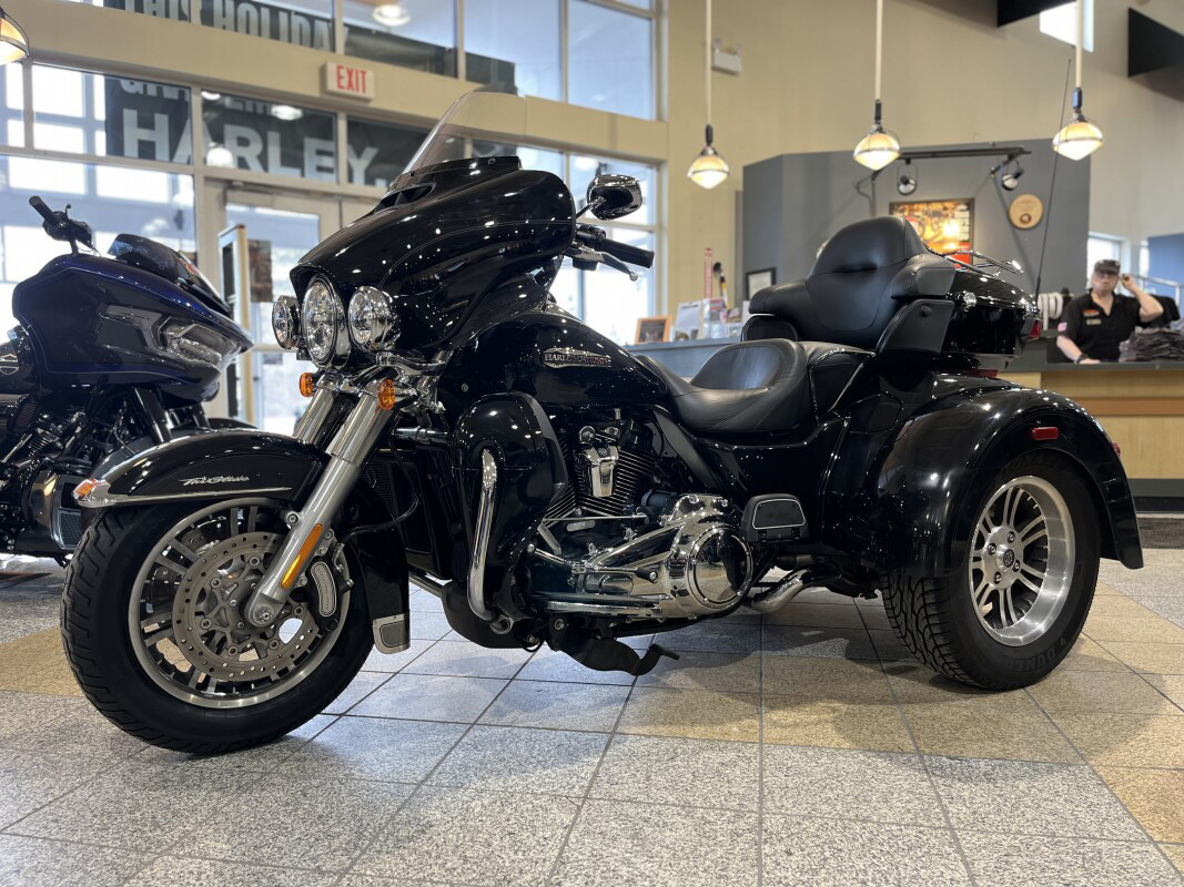 2018 Harley-Davidson Tri Glide Ultra How much motorcycle can you fit on three wheels? One look at the Tri Glide Ultra motorcycle and you'll have your answer. Features may include:Milwaukee-Eight V-Twin Engine A powerful, smooth-running engine with crisp throttle response and a pure, soul-satisfying rumble. Premium BOOM! Box 6.5 Infotainment System A stylish 6.5-inch full-color touch screen display with hands-free mobile phone, media, and navigation. Delivers powerful, pure sound and dynamic full-range audio 6-Speed Cruise Drive Transmission Provides smooth, quiet shifting and reduces engine speed on the highway, so you get a better match between engine turnover and road speed. Trunk and King Tour-Pak Storage The integrated trunk offers 4.4 cubic feet and 50 pounds of storage capacity, while the waterproof, injection-molded Tour-Pak luggage carrier keeps things classy and neat with soft woven-nylon luggage liner and plenty of storage pockets. Daymaker LED Headlamp and LED Foglamps Darkness-defying headlight to see and be seen. Batwing Fairing & Splitstream Air Vent Designed to deliver smoother airflow and reduced head buffeting with a pressure-equalizing duct on the front. It opens and closes with one touch of a button.