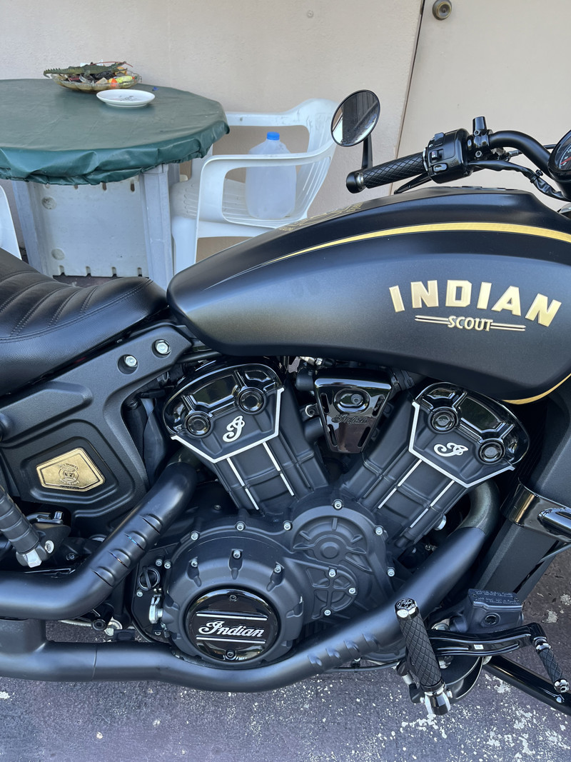 Rare Indian scout bobber only 177 made rare bike in excellent condition. Only 4993 miles with clean title in hand. It’s the Jack Daniel’s fire brigade edition. Sought after bike that will increase in value. Made with 24 carat gold emblems.