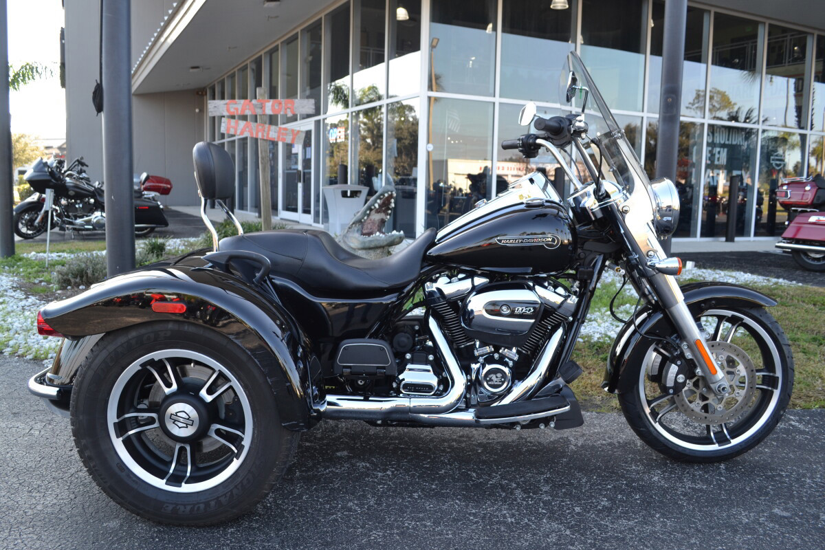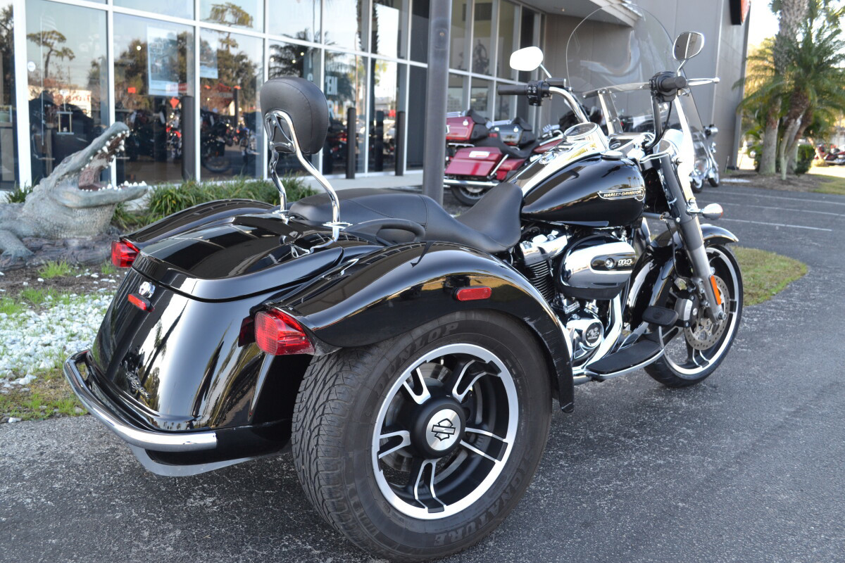 Installed is a detachable passenger backrest, detachable windshield and a chrome rear bumper! New engine oil, oil filter, clutch system has been flushed and brake system! All-new enhancements meet stripped-down custom style. You get the confidence of three wheels with all-new cornering enhanced Reflex linked brakes with ABS and traction control. Classic styling details, like bobtail fenders, slash cut pipes, 12-inch mini apes and Enforcer aluminum wheels. There’s enough cargo space to hold two full-face helmets plus your extra gear. Power is plentiful, thanks to a Milwaukee-Eight 114 (1868cc) V-Twin engine. Dual bending valve 49mm front forks and easily adjustable rear suspension make the ride smooth.