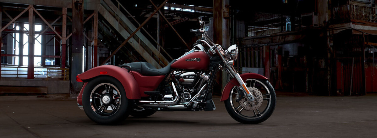All-new enhancements meet stripped-down custom style. You get the confidence of three wheels with all-new cornering enhanced Reflex linked brakes with ABS and traction control. Classic styling details, like bobtail fenders, slash cut pipes, 12-inch mini apes and Enforcer aluminium wheels. There’s enough cargo space to hold two full-face helmets plus your extra gear. Power is plentiful, thanks to a Milwaukee-Eight 114 (1868cc) V-Twin engine. Dual bending valve 49mm front forks and easily adjustable rear suspension make the ride smooth.