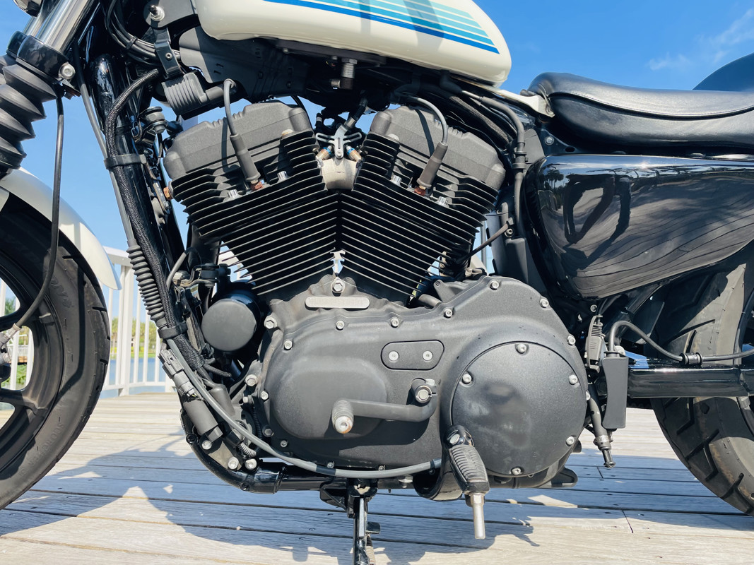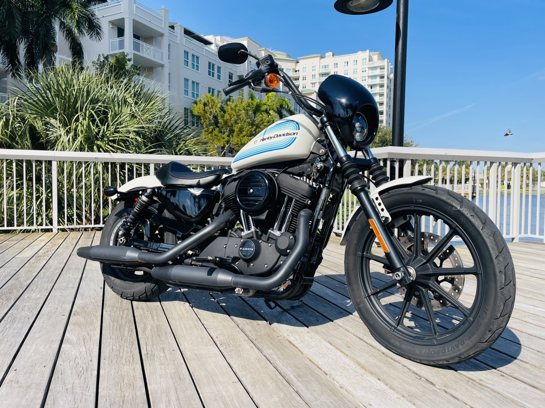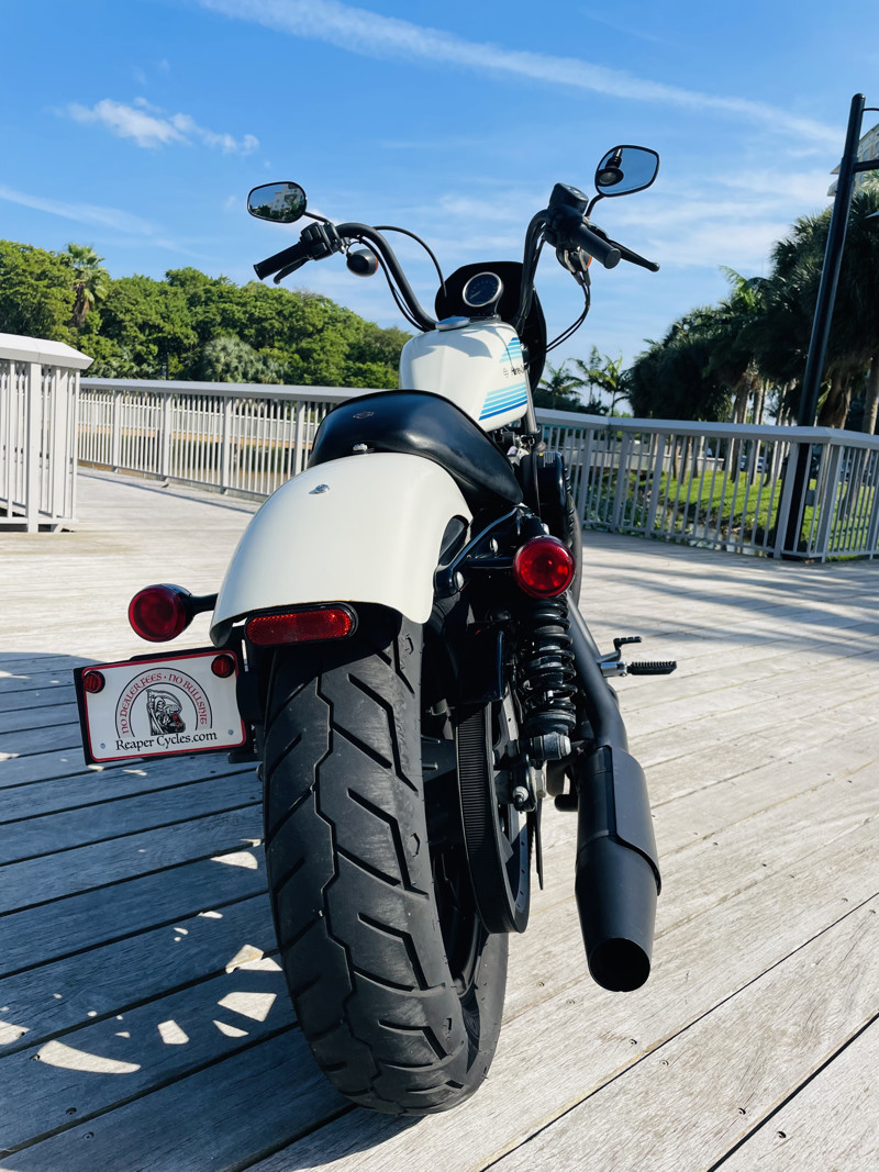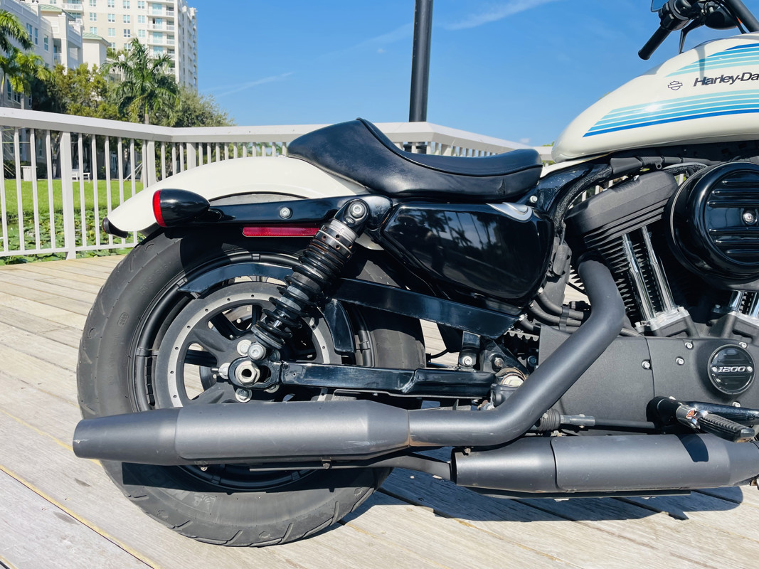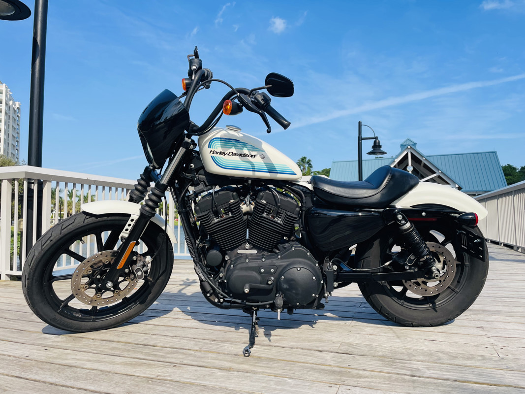 The 1200cc Sportster is a full powered motorcycle with enough to get you around anywhere. This white Iron 1200 is in good shape all around with small nicks here and there that are expected. A small rock chip on the tank and some scratches right by the seat. The bike runs excellent and shifts perfect. See the walk around video for details on condition.
