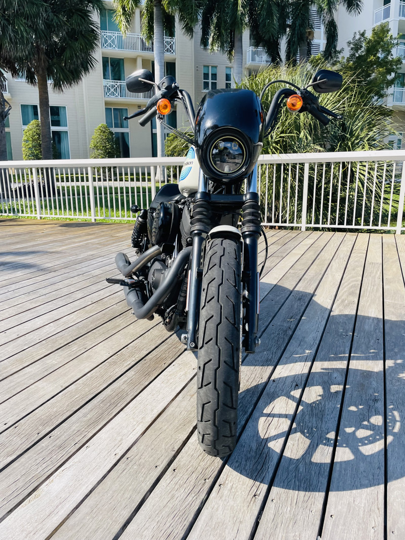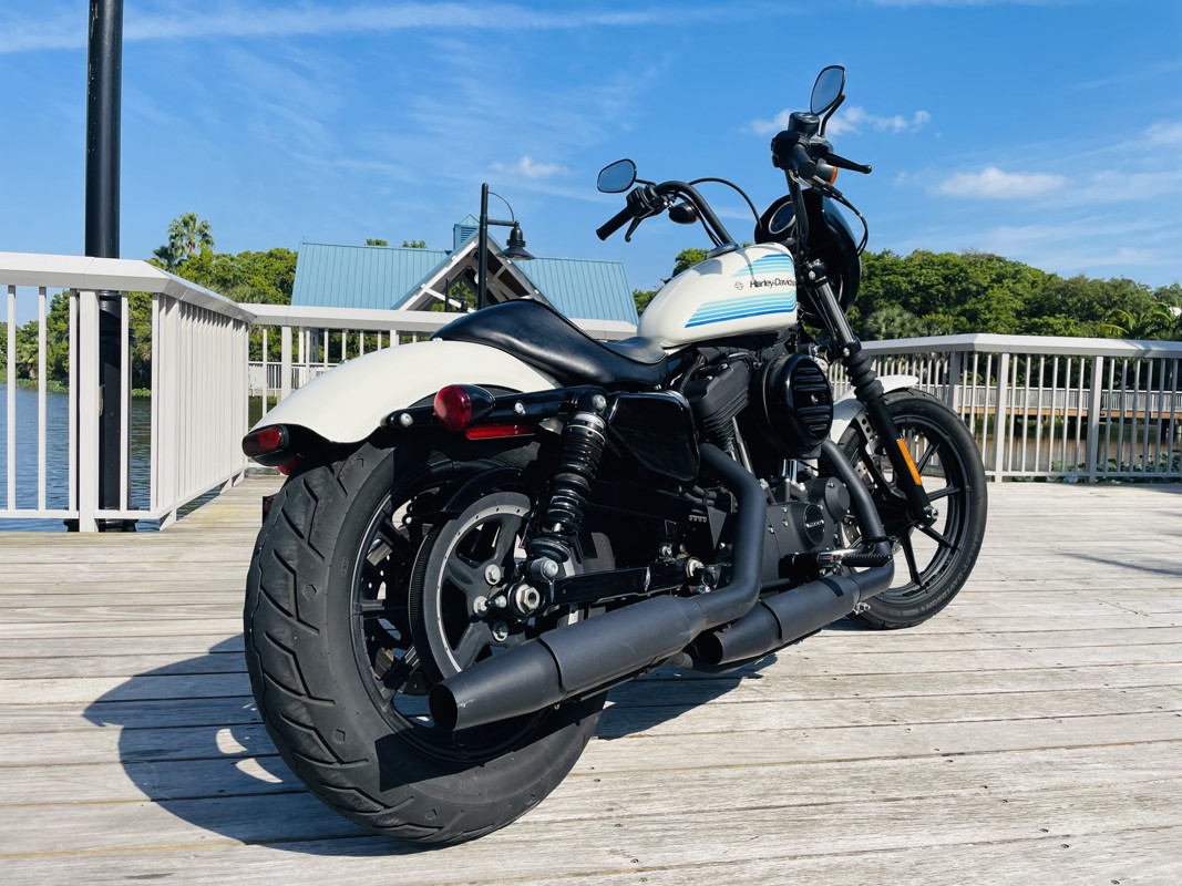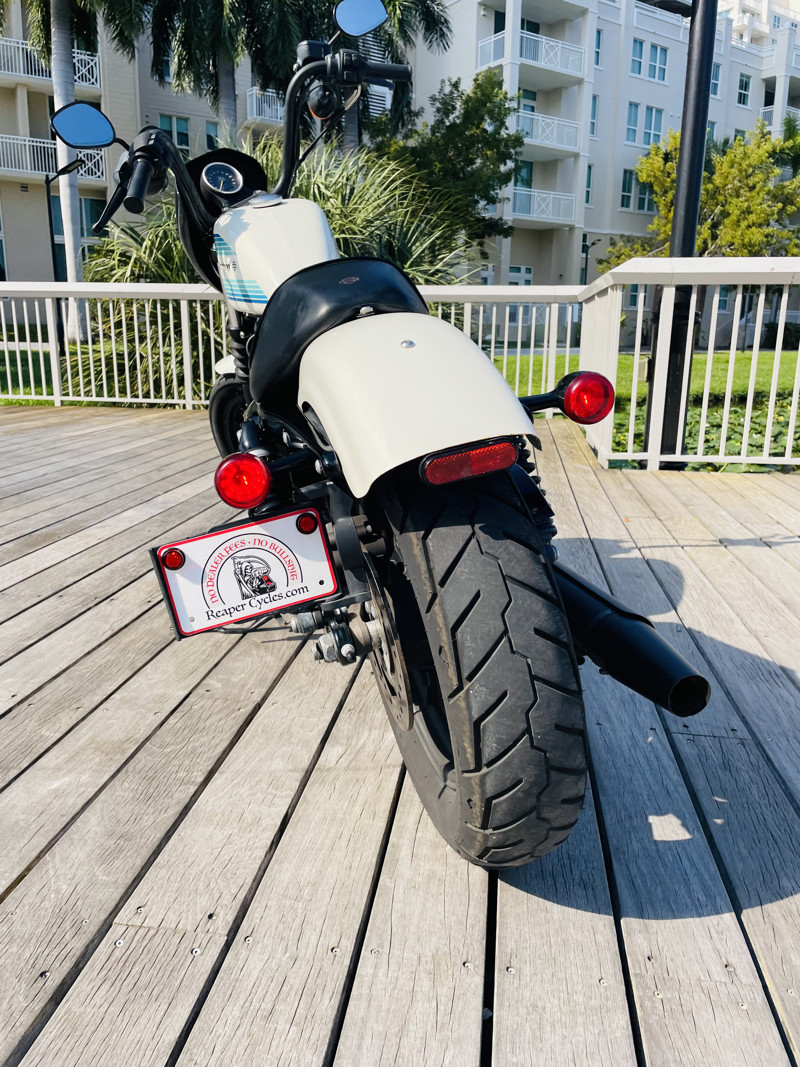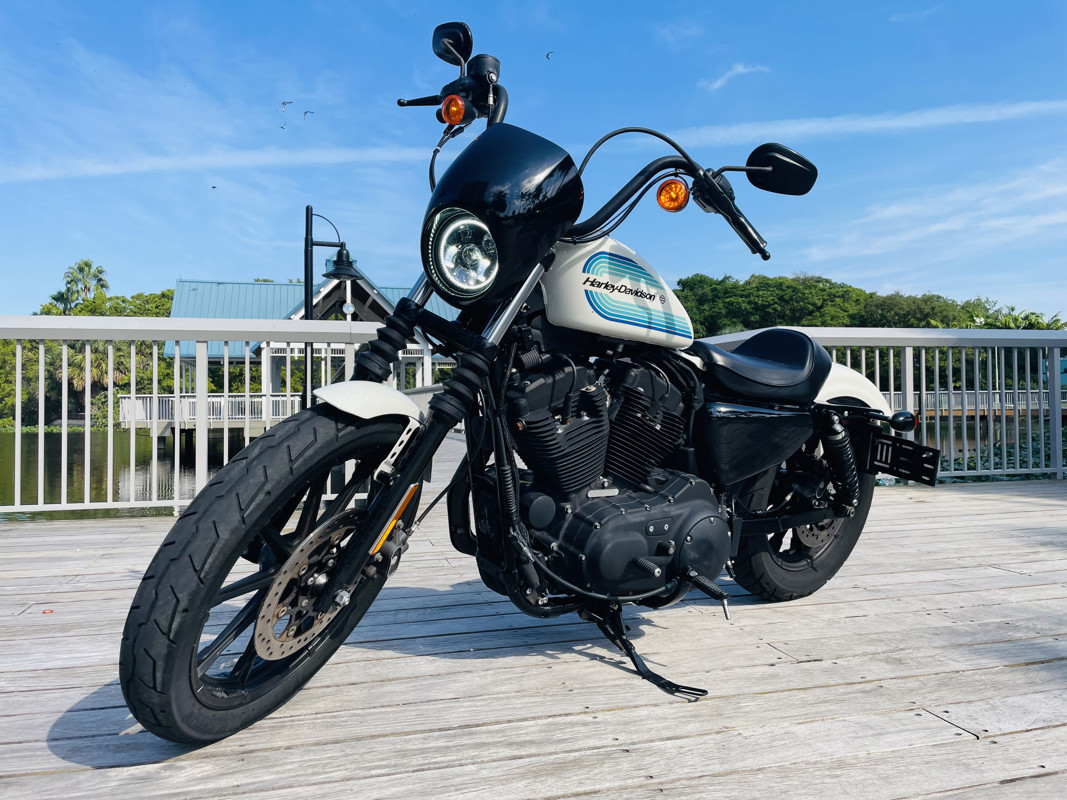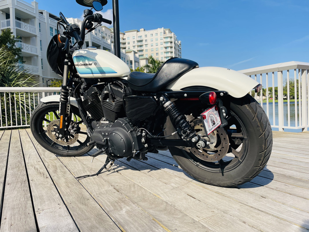 The 1200cc Sportster is a full powered motorcycle with enough to get you around anywhere. This white Iron 1200 is in good shape all around with small nicks here and there that are expected. A small rock chip on the tank and some scratches right by the seat. The bike runs excellent and shifts perfect. See the walk around video for details on condition.