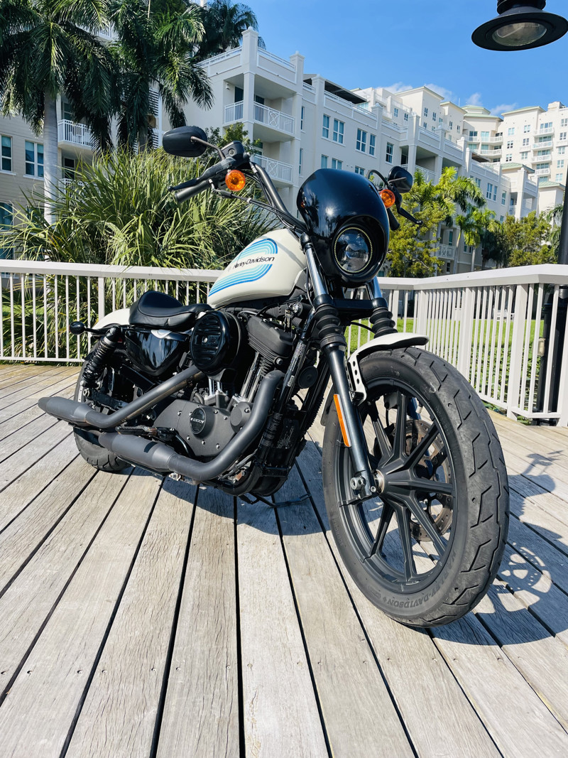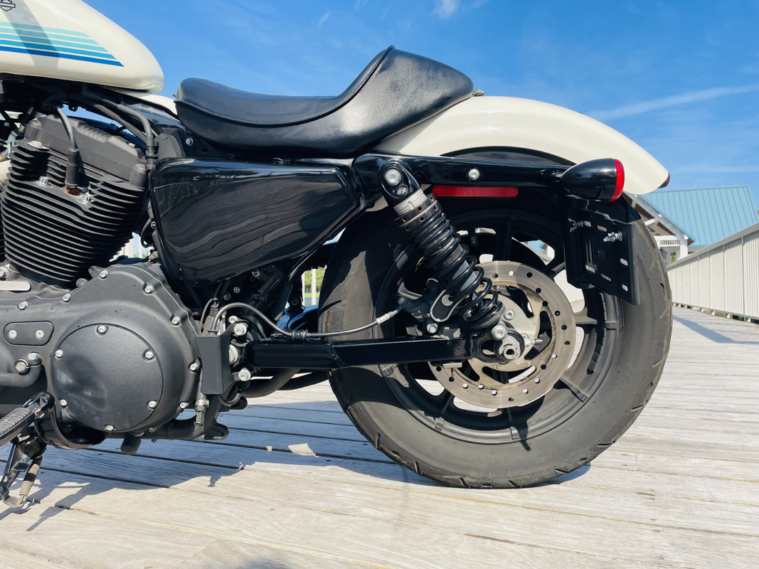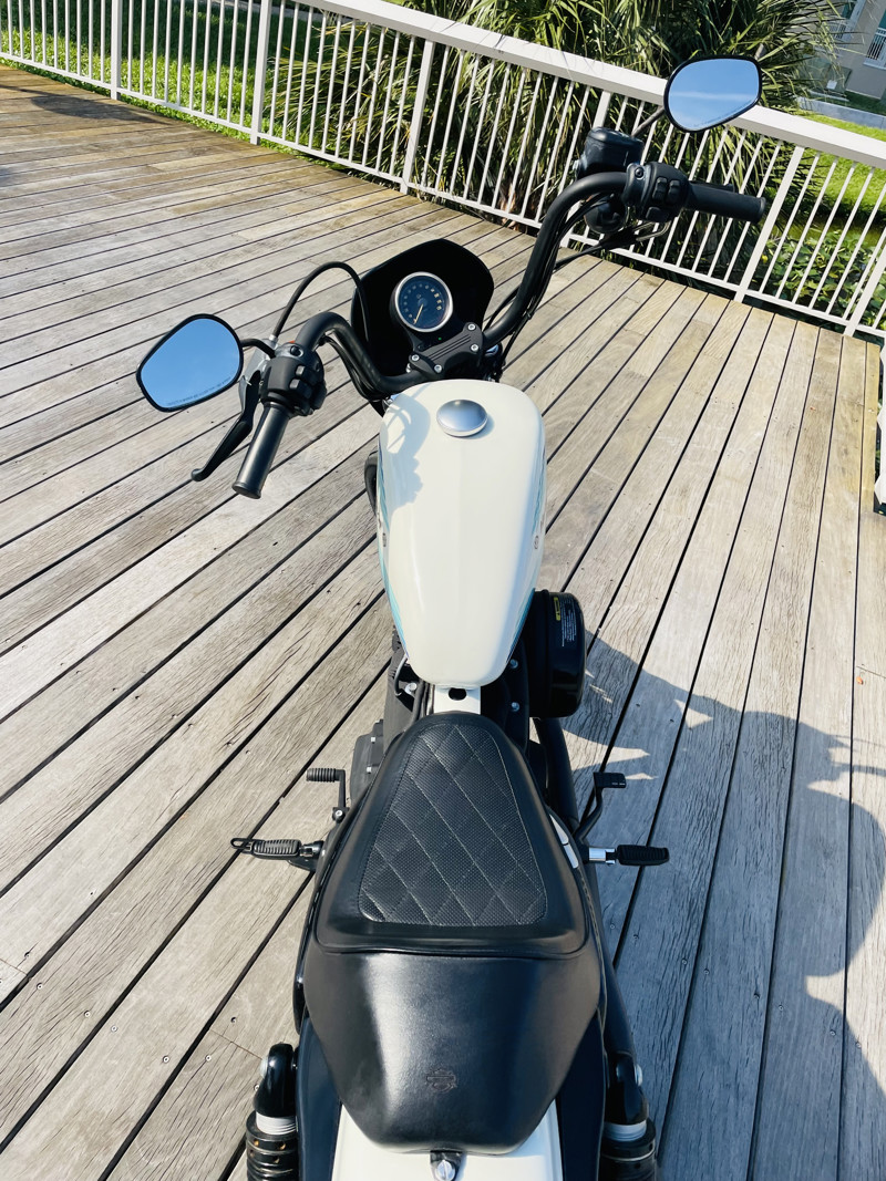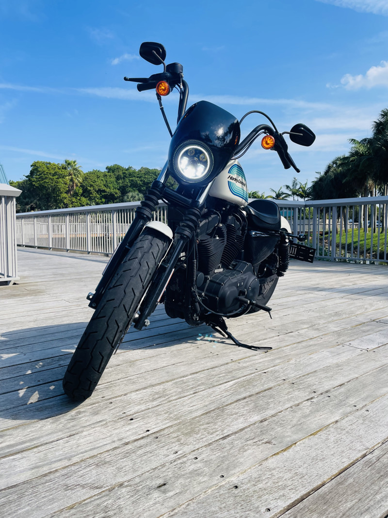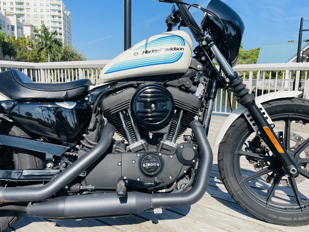 The 1200cc Sportster is a full powered motorcycle with enough to get you around anywhere. This white Iron 1200 is in good shape all around with small nicks here and there that are expected. A small rock chip on the tank and some scratches right by the seat. The bike runs excellent and shifts perfect. See the walk around video for details on condition.