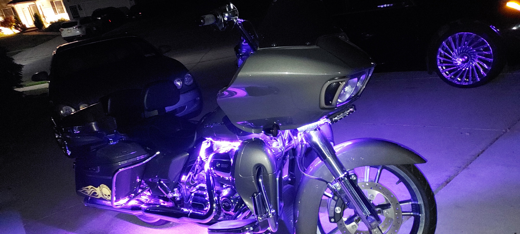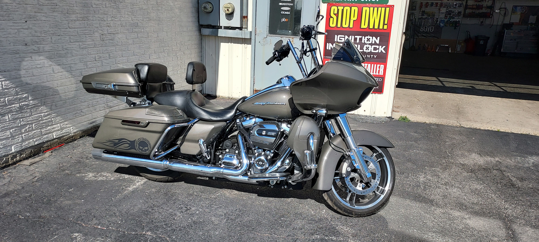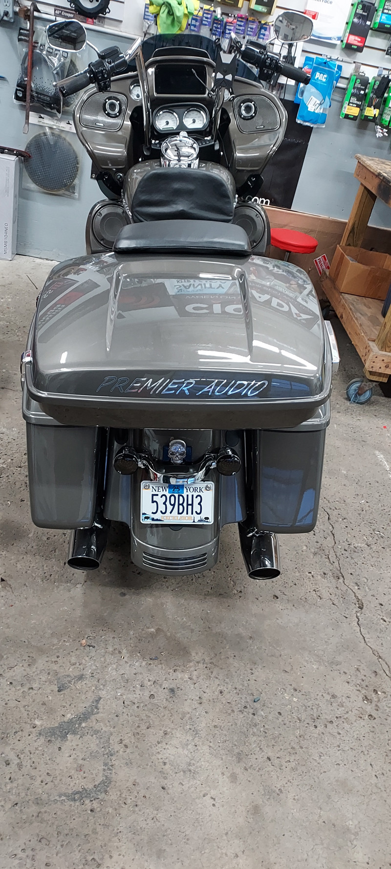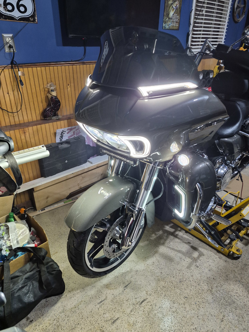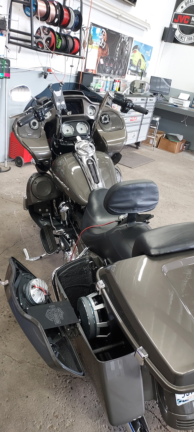 19 Roadglide added lower fairings,tourpack Meathook bars,$10,000 Full custom 5800watt Cicada Audio sound system soundigital 3000.1 sounddigita 2400.4 Soundigital 400.2 10" ported bags unabused in perfect condition low mileage 6 speed transmission cruise control led lighting 4.5 inch sharkroad exhaust.