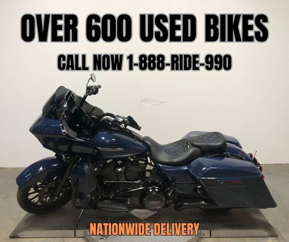 USED ROAD GLIDE SPECIAL FOR SALE WITH 114 CUBIC INCH MILWAUKEE 8 MOTOR! HARD TO FIND BIKE, IN HARD TO FIND COLOR! IT’S CLEAN, CLEAN, CLEAN! THE “BILLIARD BLUE” PAINT SHINES LIKE NEW. BLACKOUT FINISHES INCLUDE BLACKOUT WHEELS, BLACKOUT CONTROLS, BLACKOUT FRONT END, BLACKOUT MOTOR, BLACKOUT EXHAUST, AND MORE! OVERSIZED L.E.D. SCREEN, INFOTAINMENT SYSTEM, BLUE TOOTH STEREO, NAVIGATION SYSTEM, CRUISE CONTROL, SECURITY SYSTEM, THIS ONE HAS IT ALL! JUST SERVICED AT DEALERSHIP, INSPECTED, ALL FLUIDS CHANGED, RUNS STRONG, EVERYTHING WORKS, NEEDS NOTHING! BUY WITH CONFIDENCE!
