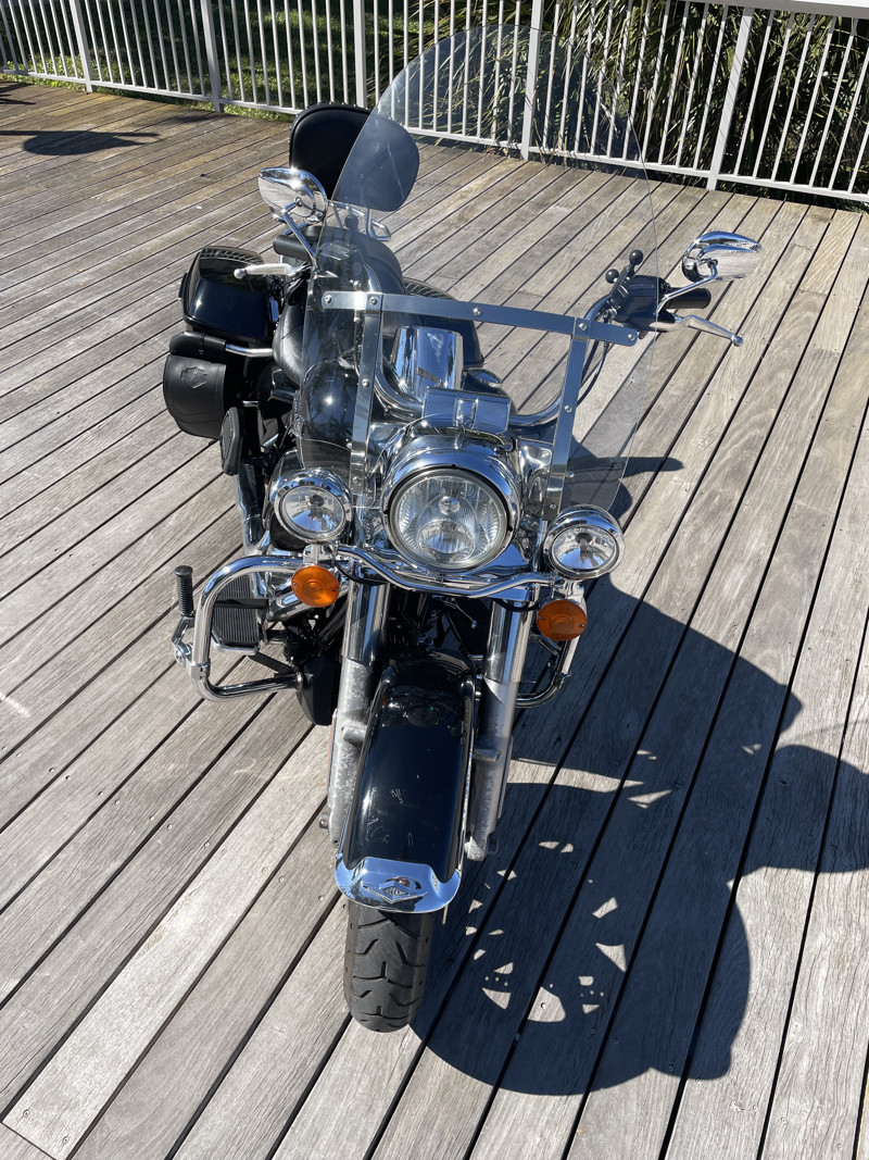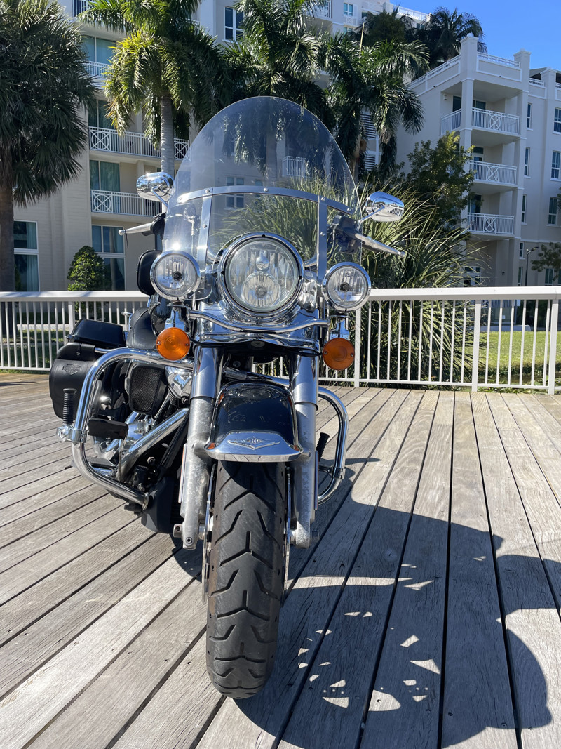 Harley Davidson’s Road King is the smallest of the big touring bikes. The main reason why Police Departments use this bike as their choice of police bikes is the agility yet the comfort and ability to carry heavy equipment to do their work. It is the perfect in between when you do not want to take out the big and bulky Street Glides or Electra Glides, yet if you want to go on a trip add a tour pack easy to the quick-connects and you are riding with all the trunk space you need.