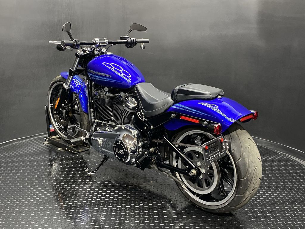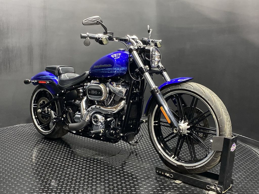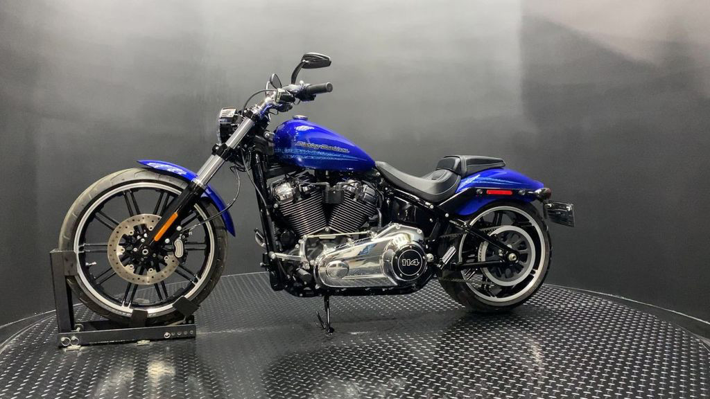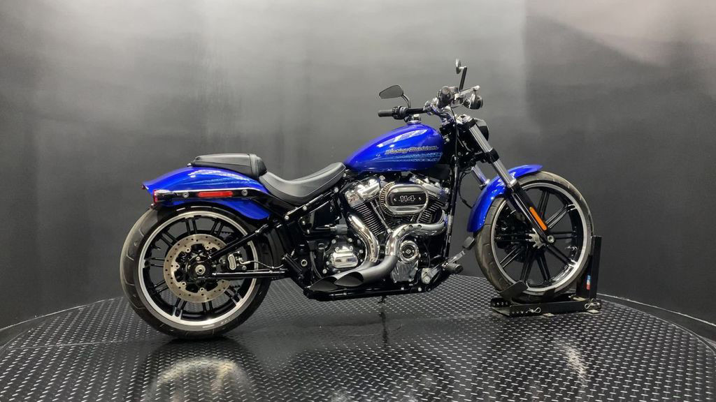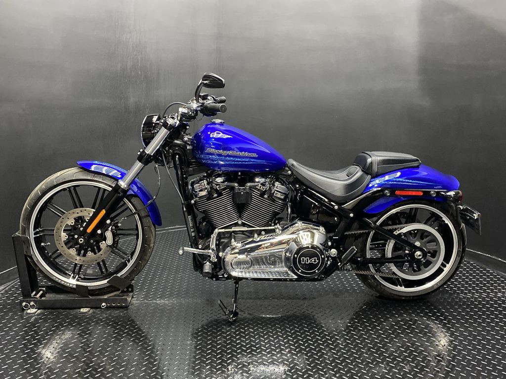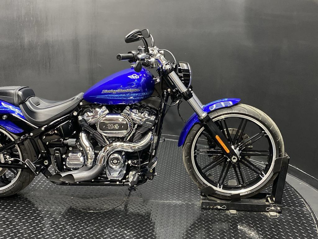 YOU ARE LOOKING AT A 2019 HARLEY DAVIDSON BREAKOUT 114 (FXBRS) WITH 11,347 MILES ON IT. IT IS BLUE MAX IN COLOR AND POWERED BY A 1868CC (114") FUEL INJECTED ENGINE AND 6 SPEED TRANSMISSION. THE BIKE COMES WITH ABS BRAKES, 1 KEY, 1 FOB, AND FACTORY SECURITY SYSTEM. THERE ARE A FEW EXTRAS ON THE BIKE WHICH INCLUDE BLOW 2 IN 1 EXHAUST ($989.95), TRIBAL MIRRORS ($119.95), AND PASSENGER PEGS ($79.95). THERE ARE NO SCRATCHES, DENTS, OR DINGS THAT I CAN FIND. THE CHROME AND ALUMINUM ARE IN GOOD CONDITION. THE TIRES HAVE GOOD TREAD LEFT ON THEM.