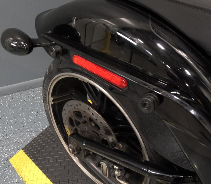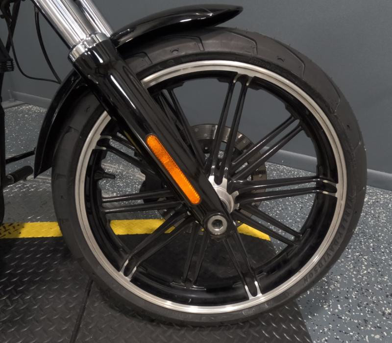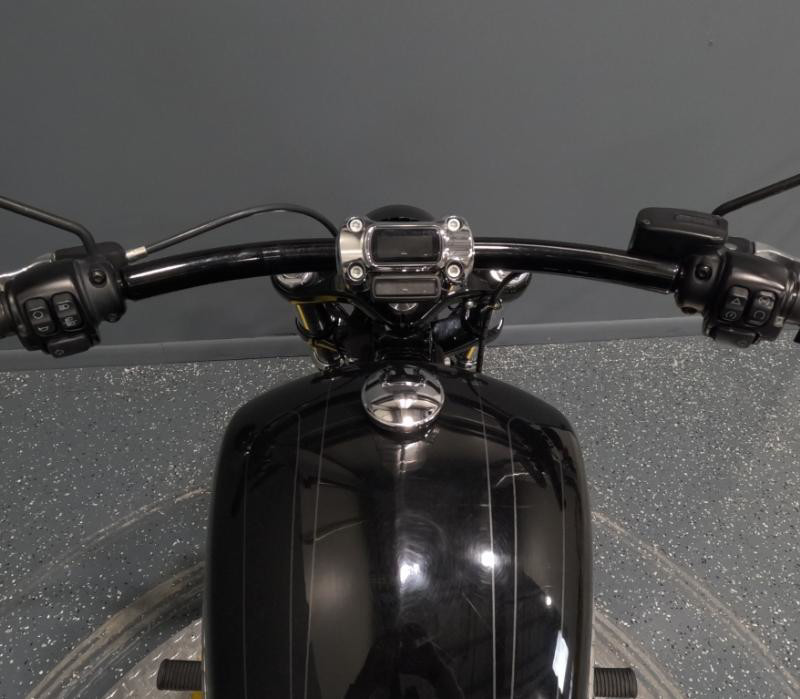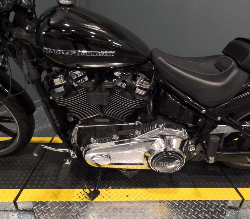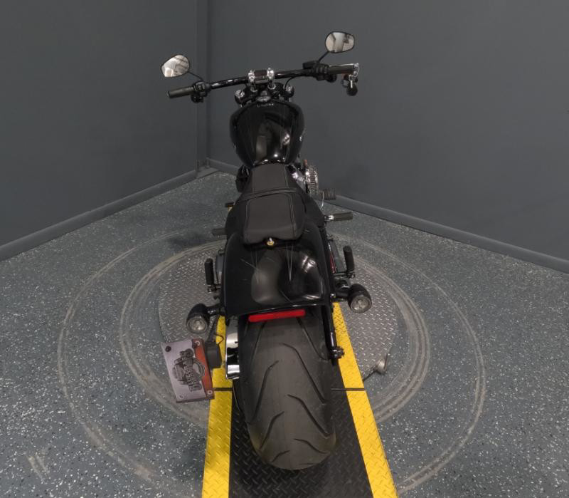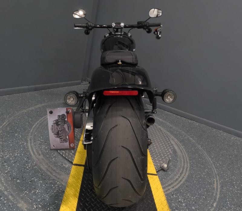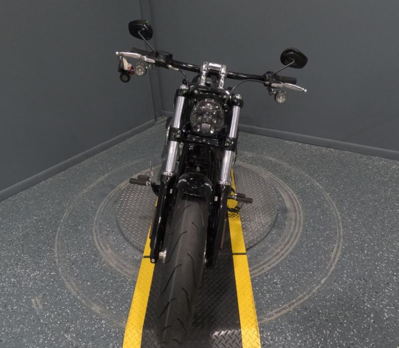 The exterior of this Breakout 114 is finished in a sleek black color with a stylish pinstripe, giving it a classic yet bold appearance. The black paintwork is complemented by chrome accents, enhancing its overall aesthetic appeal. The bike's design is both aggressive and elegant, making it a head-turner on the road.