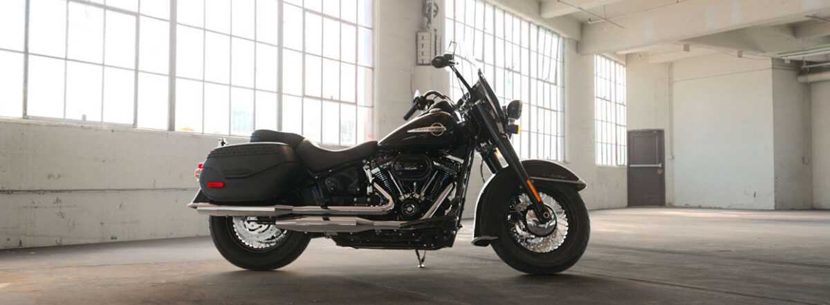 The refined gloss-black finishes, modern edge and reinvigorated ride of the Heritage model take nostalgia ripping into a new place. It starts with the performance of the Milwaukee-Eight 107 or 114 engine and the re-invented Softail frame and suspension. The ride will put a big smile on your face. On top of that, you get a look that drips with gangster-era style. And practical features like a windshield and hard saddlebags for light touring. Tradition is good, but it doesn’t mean sitting still. Available in 107 (1745cc) and 114 (1868cc) engine displacements.