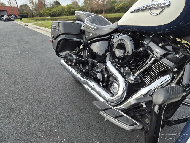 2019 Harley-Davidson® Softail® Heritage ClassicFROM THE SHADY SIDE OF THE FAMILY TREEThe dark style, modern edge and reinvigorated ride of the Heritage model take nostalgia ripping into a new place.Features may include:TRADITION IS GOOD, BUT IT DOESN’T MEAN SITTING STILLA DARK CLASSIC WITH MODERN EDGEDripping with gangster-era style and vintage details. If Bonnie and Clyde rode a Harley®motorcycle, this would be the one.SOFTAIL®FRAMEThe reinvented frame retains the classic Softail®lines, but its lightweight design and stiffness translate to a responsive ride unlike anything you’ve felt before.MILWAUKEE-EIGHT® BIG TWIN ENGINEA powerful, smooth-running engine with crisp throttle response and a pure, soul-satisfying rumble. Available in 107 and 114 engine displacements.SIGNATURE LED FORWARD LIGHTINGDarkness-defying lighting that gives you great visibility at night.LOCKABLE AND SEALED SADDLEBAGSA sleek look on the outside and roomy on the inside with enough space to stash your riding essentials. The lids open with one touch.DETACHABLE WINDSCREENGo from touring to cruising in a heartbeat. Leave the screen on for a clean envelope of air over the long haul. Or remove it in seconds for a completely new look and ride.HIGH PERFORMANCE FRONT SUSPENSIONSophisticated suspension technology provides the performance of a racing-style cartridge fork for reduced weight with linear damping characteristics.HIGH PERFORMANCE REAR MONO SHOCKEasily adjustable mono-shock rear suspension allows for dynamic cornering capability while preserving the hardtail look.