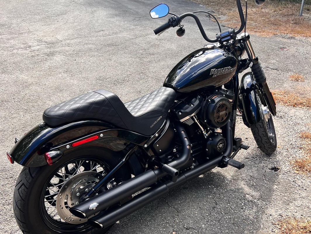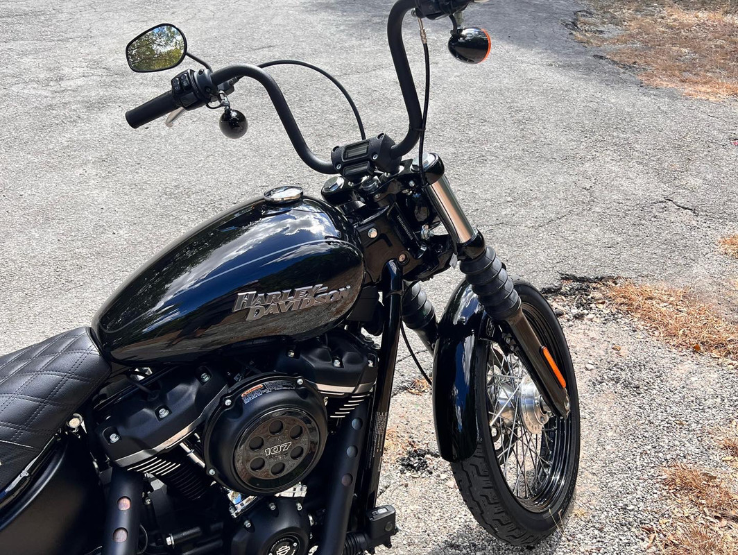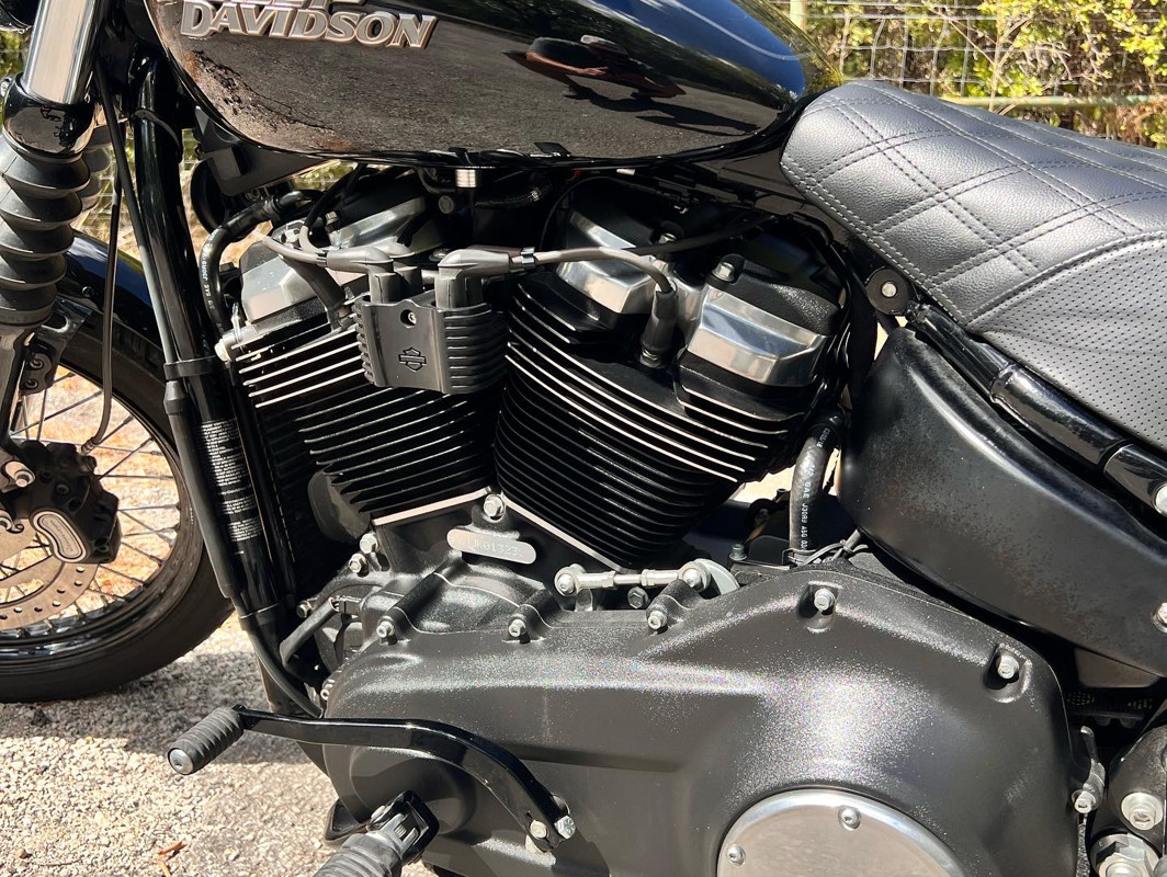This is a super clean, low miles 2019 Harley Davidson Street Bob.