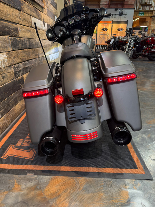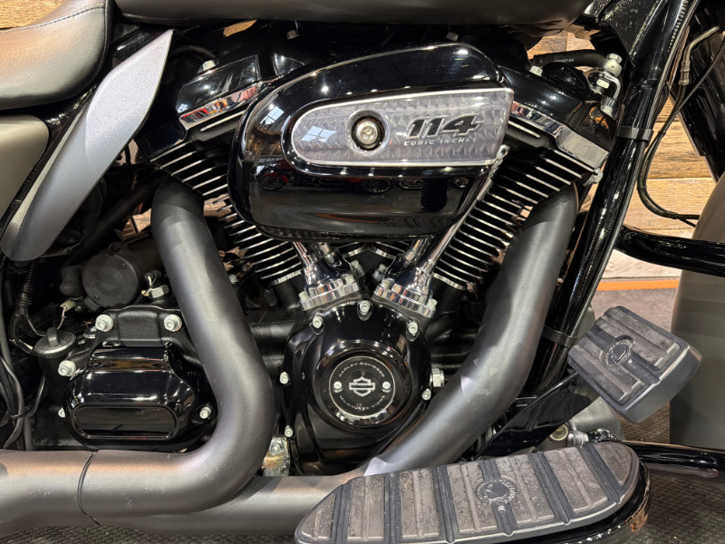 This bike comes with the Milwaukee Eight 114 Engine, 6-Speed Transmission, LED Headlamp, LED Smoked Front Turn Signals, Black Engine Guard, Highway Mounts and Pegs, H-D Windsplitter Windshield, Docking Hardware, LED Rear Turn Signals, LED Smoked Saddlebag Lights, Rinehart Slip On's, H-D Grips, Rockford Fosgate Fairing Speakers, H-D Willie G Skull Collection: Fuel Door, Footboard Inserts, Shifter Pegs, Highway Pegs, Brake Pedal, Front Axle Covers; Lighted Black Fairing Vent Insert, and more.