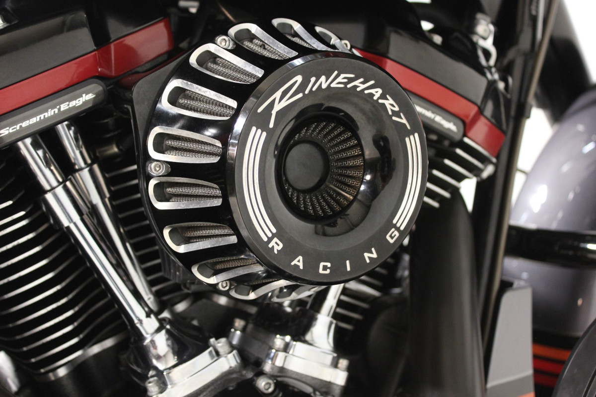 The pinnacle of the custom touring look taken to the edge and loaded with power. No corners were cut, no shortcuts were taken. We sweat every detail and then polished it like a jewel. Rhinehart Exhaust, Rhinehart Air Intake, 12 Inch raised Bars and Custom Grips. Setting here at Ronnie's Harley Davidson, Wahconah Street, Pittsfield Massachusetts.