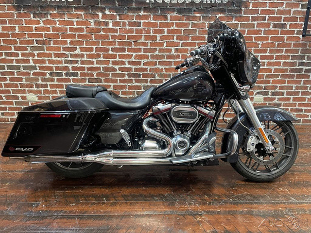2020 Harley-Davidson® CVO™ Street Glide®WE WENT BIG, NOW IT’S YOUR TURNThe pinnacle of the custom touring look taken to the edge and loaded with power. No corners were cut, no shortcuts were taken. We sweat every detail and then polished it like a jewel.Features may include:Milwaukee-Eight® 117 Twin-Cooled™ EngineThe most powerful Twin-Cooled V-Twin engine ever offered from the H-D factory, and only available in CVO™ models. Features color accented Rocker Box Lowers with Blaze Red finish.H-D™ Connect Service With subscription-based cellular connectivity, you can connect to your bike through your smart phone using the latest version of the Harley-Davidson™ App. Check your bike's vitals including fuel level, get tamper alerts and stolen-vehicle tracking, and more.Reflex™ Defensive Rider SystemsA new collection of technologies that help give you confidence and control in less-than-ideal situations. The systems utilize advanced chassis control, electronic brake control and powertrain technology to assist you with accelerating and braking in a straight line or while in a turn.Premium Paint and FinishesExclusive paint colors and designs executed to a level of intricate quality that is unmatched in the motorcycle and automotive categories.BOOM!™ GTS Infotainment SystemAn evolved interface experience that offers a contemporary look, feel and function, with exceptional durability and features designed specifically for motorcycling. Every element is optimized to enhance the rider’s interaction with the bike and connectivity with the world.High-Performance Front and Rear SuspensionDual bending valve front suspension and emulsion rear suspension with hand-adjustable pre-load put you in control of a plush ride.Daymaker® Adaptive LED HeadlampThe most-advanced headlamp system ever developed for a Harley-Davidson® motorcycle. Features a signature LED light outer ring that operates as a position lamp, and additional LED lights that activate based on the lean of the bike to project light into corners to illuminate areas of the road that are unlit by traditional LED headlamps.Fugitive™ Cast Aluminium Wheels The premium hot rod bagger look is complete with Front 19-inch and Rear 18-inch wheels finished in Gloss Black/Satin.Custom Touring StyleFull-on custom treatment from fender to fender. You get custom seat covers and stitching, a heavy breather air cleaner with two paint treatments, billet fairing mount mirrors—the list goes on.Wireless headset The Boom!™ Audio 30K Bluetooth® headset lets you call hands-free on your Bluetooth® mobile phone, listen to stereo music or voice instructions of GPS navigation and have intercom conversations with your passenger or fellow riders.