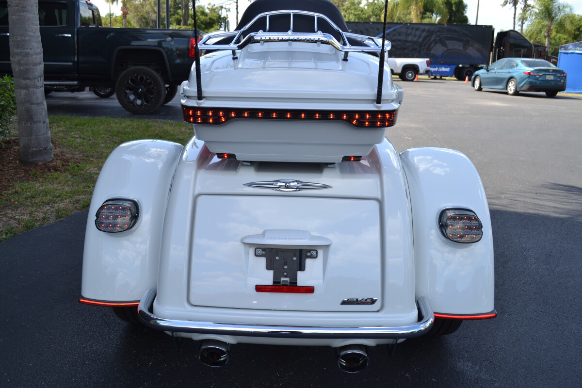 The most-requested model in the history of Custom Vehicle Operations is here and overflowing with features to lose yourself in. Dive into the 117-cubic-inch Milwaukee-Eight power. See it all with the new Daymaker LED headlamp. Take hold of the custom Kahuna collection grips, levers, pegs and floorboards. Stay connected with top-of-the-line BOOM! Box GTS infotainment, a premium sound system and the BOOM! Audio 30K Bluetooth headset to communicate with your bike, your passenger and other riders. And keep your ride safe, sound and always ready to go with the Reflex Defensive Rider Systems and smartphone-linked H-D Connect.Balance it all on new 19-inch front wheels, 18-inch Tomahawk contrast cut rear wheels and the choice of two premium custom paint finishes. The CVO Tri Glide doesn’t just have everything you want—it makes you feel everything you need.