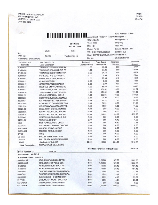 Seriously gorgeous 2020 Heritage, 107 motor with Stage One. $12K in custom parts and accessories, total investment was $34K! Ask and I'll give you details but you can see most of the upgrades. Have a full parts list with pricing that can be seen in photos. All work done by Master Tech Matt at Yankee Harley in CT and all parts are 100 percent Harley except the fat spoke rims. Bike rides great, my bum knee needs repair, riding days are over. This is a sweet bike for the right buyer, you will NOT be disappointed. Thanks for checking it out!