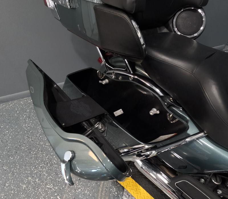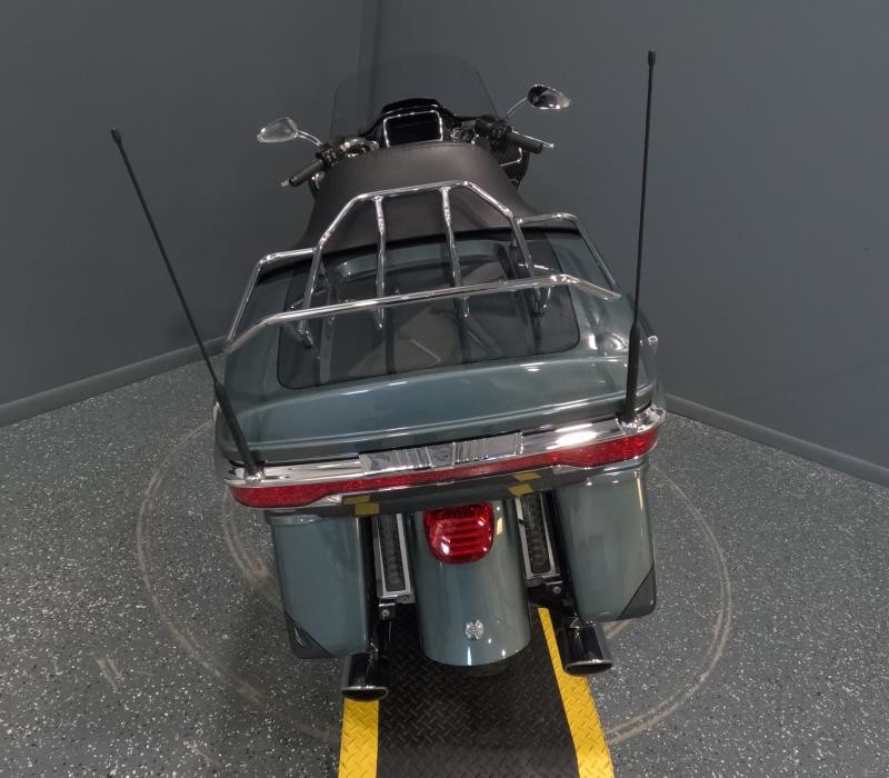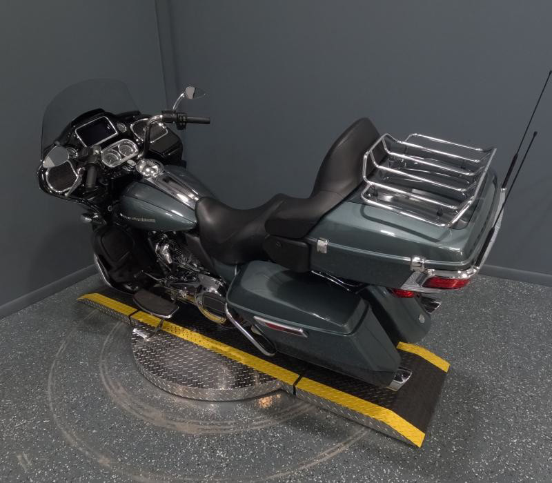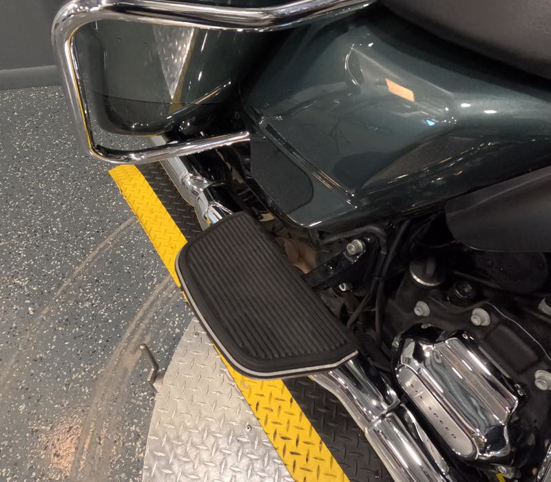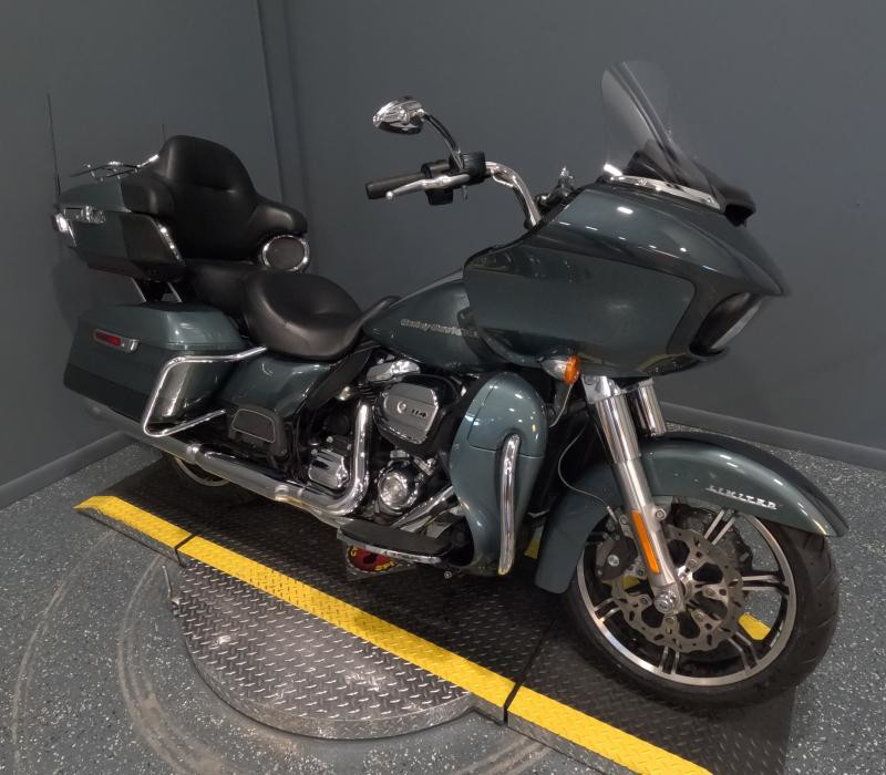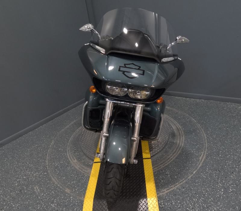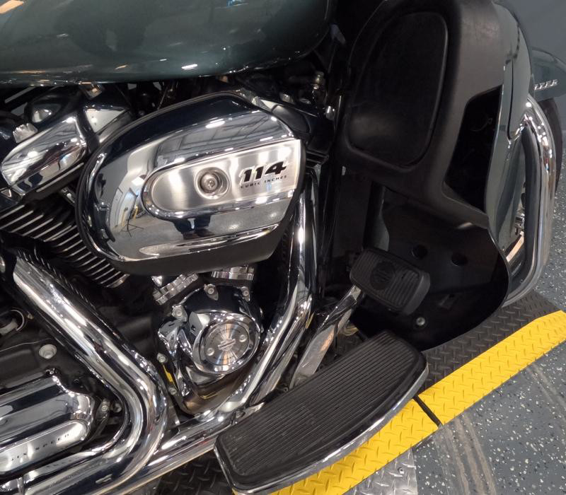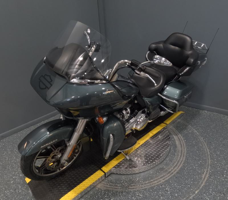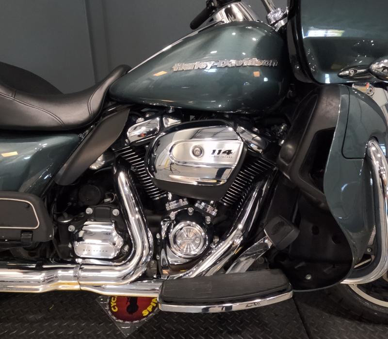 The exterior of this Road Glide Limited is finished in a unique Silver Pine/Spruce color with a pinstripe, giving it a distinctive and elegant look. The combination of colors adds a touch of sophistication and ensures that this bike stands out on the road. The chrome accents further enhance its visual appeal, providing a classic Harley-Davidson shine that motorcycle enthusiasts love.