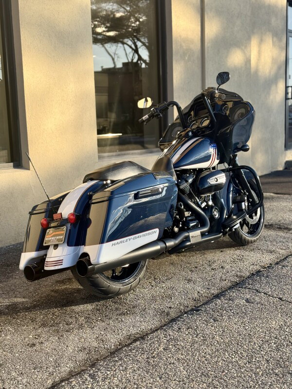 The blacked-out or chrome Milwaukee-Eight 114 engine set in the belly of the Road Glide Special takes the custom touring look to a darker place. Its new Prodigy wheels are outfitted with optional Reflex Defensive Rider Systems that connect electronically with your bike to ebb and flow through any type of weather. Premium features like the roomy, stretched saddlebags and a BOOM! Box GTS infotainment system with H-D Connect give you long-touring, head-clearing comfort without sacrificing attitude.