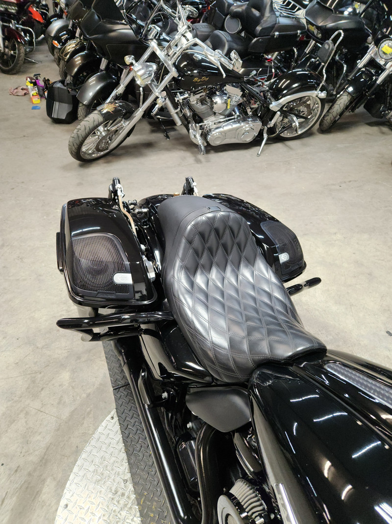 LOADED WITH UPGRADES INCLUDING A CORBIN SEAT, CARLINI HANDLEBARS WITH MATCHING SADDLEBAG PROTECTORS, HIGHWAY PEGS, AND AN OVERSIZED LED TOUCHSCREEN WITH BLUETOOTH STEREO AND NAVIGATION!
