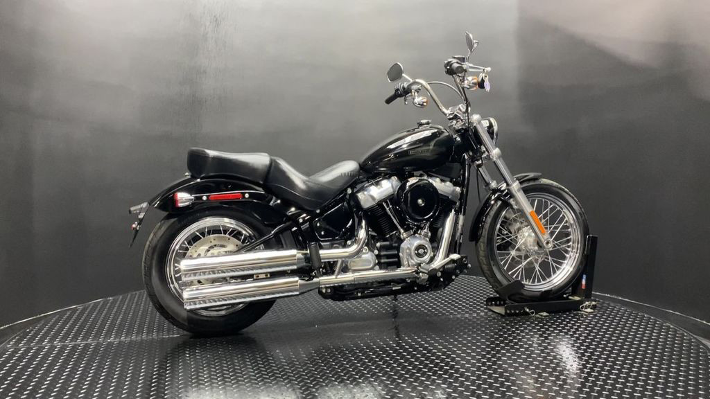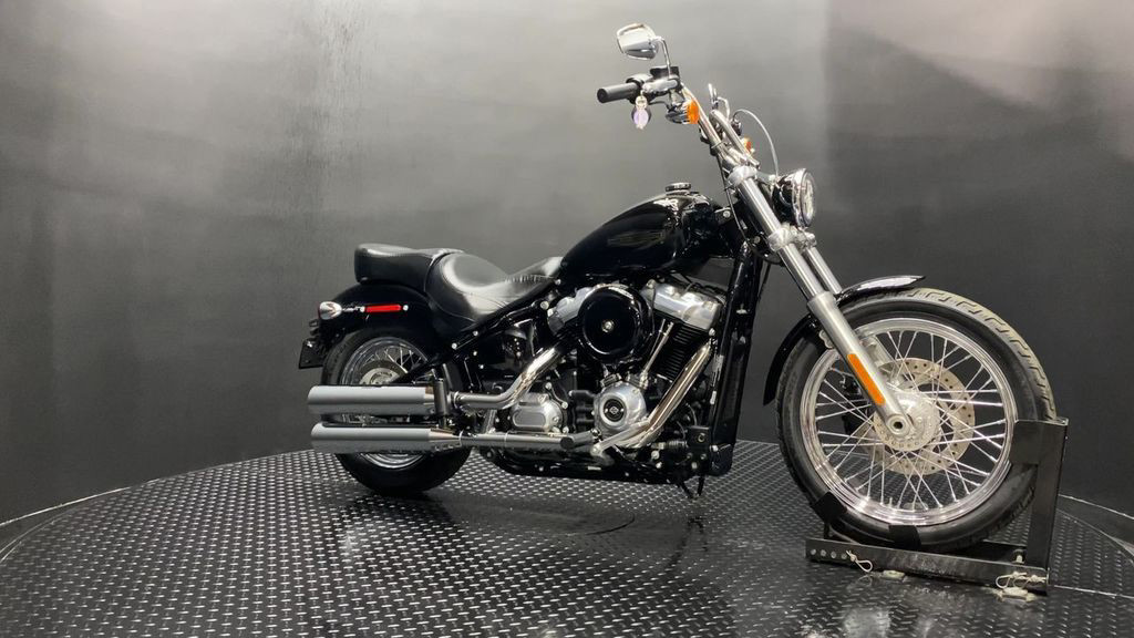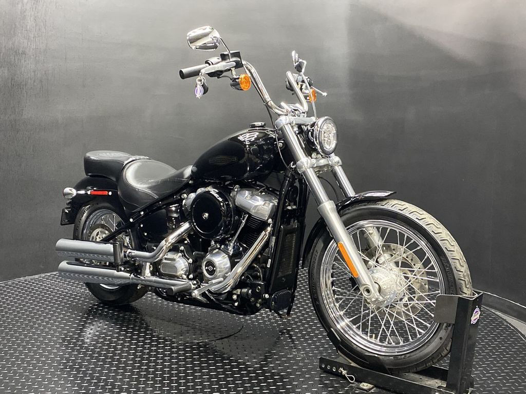 YOU ARE LOOKING AT A 2020 HARLEY DAVIDSON SOFTAIL STANDARD (FXST) WITH 8,496 MILES ON IT. IT IS VIVID BLACK IN COLOR AND POWERED BY A 1746CC (107") FUEL INJECTED MILWAUKEE EIGHT ENGINE AND 6 SPEED TRANSMISSION. THE BIKE COMES WITH 2 KEYS, 1 FOB, AND FACTORY SECURITY SYSTEM. A TOURING SEAT ($379.95) AND PASSENGER PEG KIT ($147.95) HAVE BEEN ADDED TO THE BIKE. THERE ARE NO DENTS OR DINGS THAT I CAN FIND. THERE ARE TOUCHUPS ON THE FRONT FENDER, TANK, AND REAR FENDER. THE CHROME AND ALUMINUM HAVE SCRATCHES ON THE DERBY COVER, LEFT MIRROR, AND TOUCHUP ON THE CLUTCH PERCH. THE FRONT TIRE HAS GOOD TREAD LEFT ON IT AND THE REAR TIRE WILL BE REPLACED.