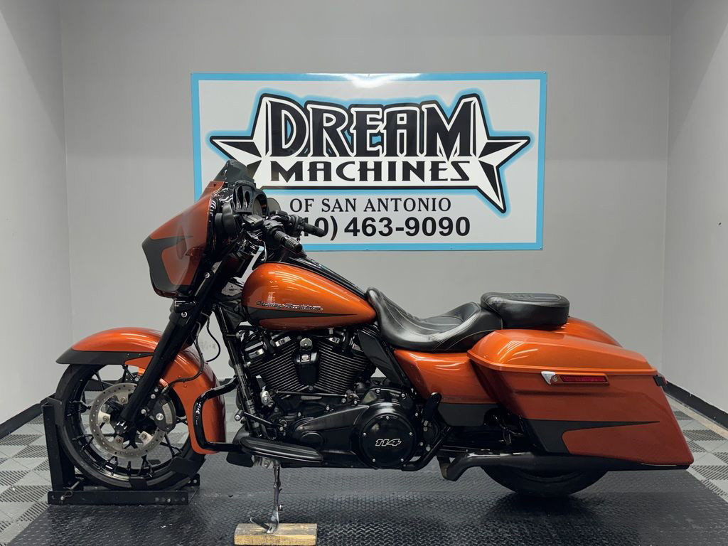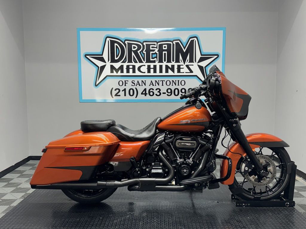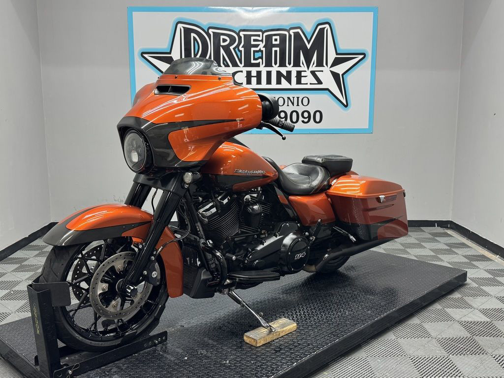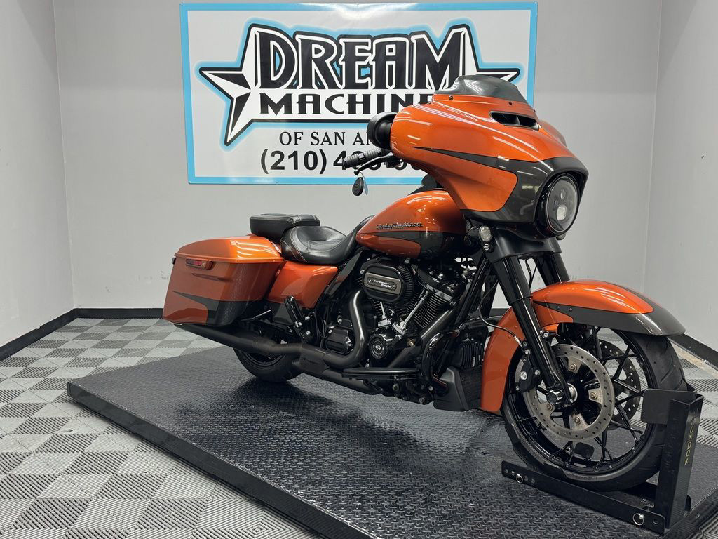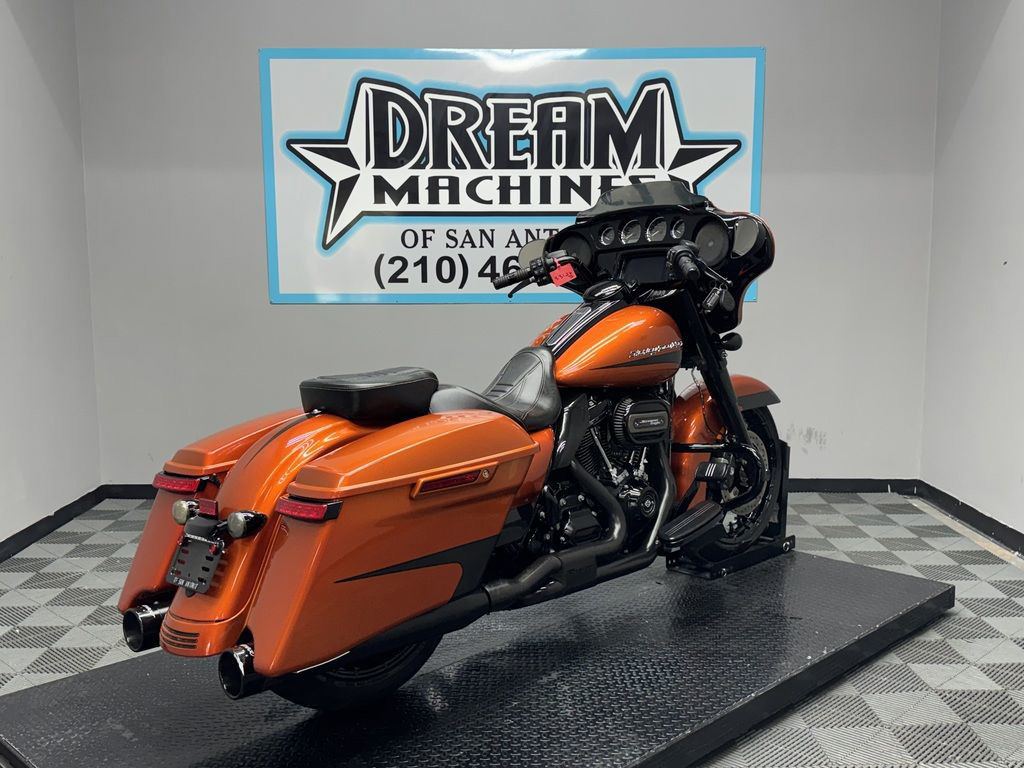 *BOOK VALUE IS $20,170 SHIPPING, LEASING, FINANCING AND EXTENDED WARRANTY MAY BE AVAILABLE! YOU ARE LOOKING AT A 2020 HARLEY DAVIDSON STREET GLIDE SPECIAL (FLHXS) WITH 14,356 MILES ON IT. IT IS SCORCHED ORANGE AND SILVER FLUX IN COLOR AND POWERED BY A 1868CC (114") FUEL INJECTED MILWAUKEE EIGHT ENGINE AND 6 SPEED TRANSMISSION. THE BIKE COMES WITH ABS BRAKES, CRUISE CONTROL, NAVIGATION, 1 KEY, 1 FOB, AND FACTORY SECURITY SYSTEM. THERE ARE SOME EXTRAS ON THE BIKE WHICH INCLUDE RINEHART SLIP-ON MUFFLERS ($769.95), RINEHART DUAL HEADERS ($1,199.95), CHOPPED ENGINE GUARD ($292.95), LOW PROFILE SEAT ($504.90), AND KAHUNA GRIPS ($139.95). THERE ARE NO DENTS OR DINGS THAT I CAN FIND. THERE ARE SCRATCHES ON THE FRONT FAIRING, LEFT SADDLEBAG, AND FLAKING ON THE RIGHT HEAT DEFLECTOR. THE CHROME AND ALUMINUM HAVE SCRATCHES ON THE FORK LOWERS, EXHAUST TIPS, AND FADING/RUST ON THE HEADERS. THE TIRES HAVE GOOD TREAD LEFT ON THEM.