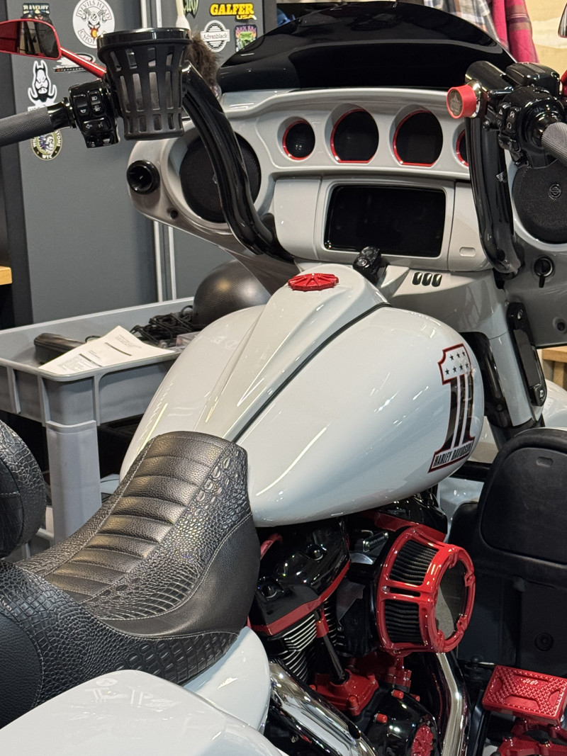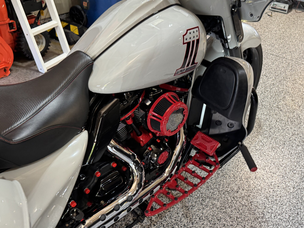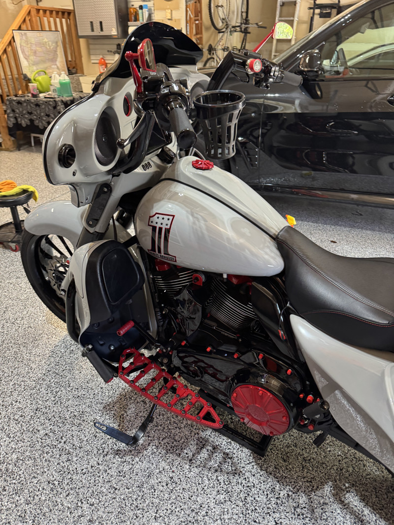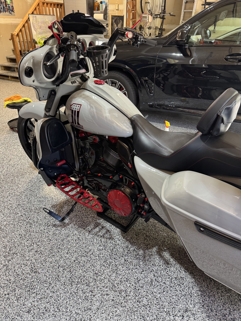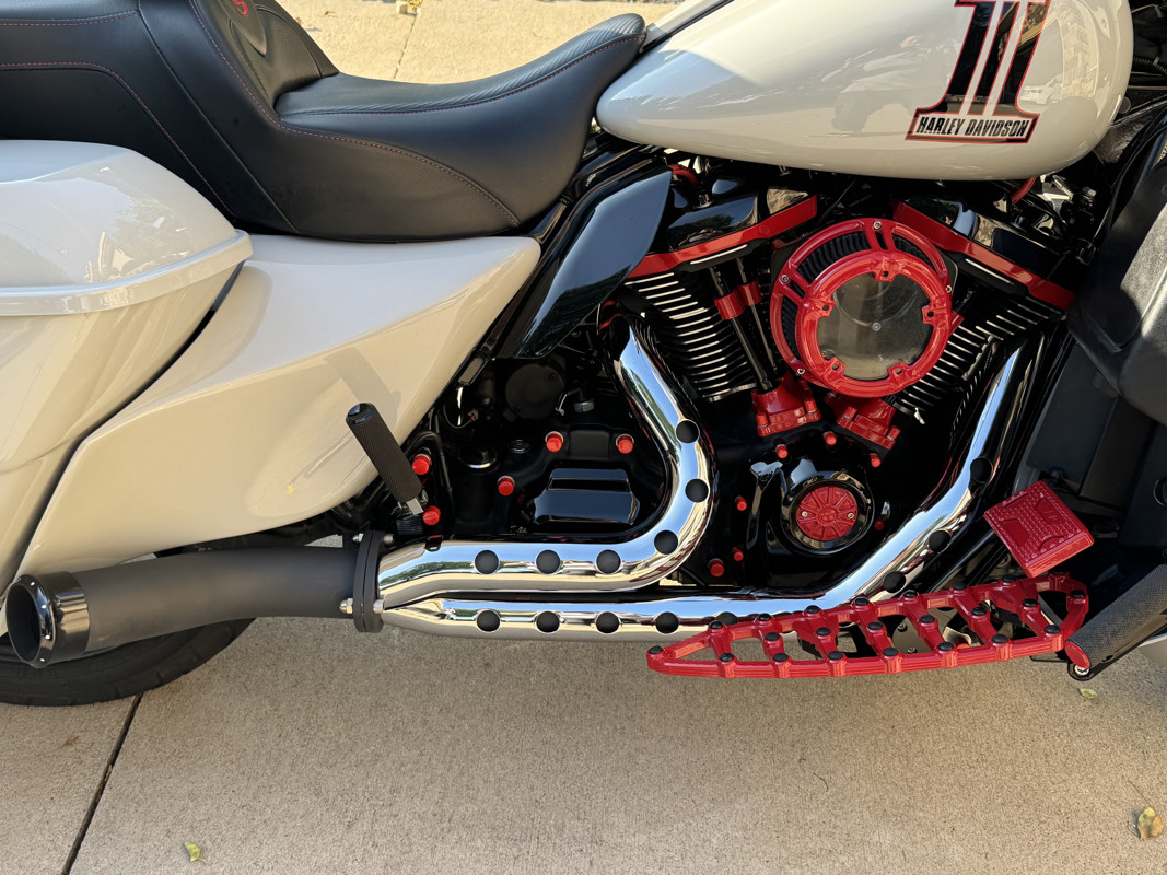 *Arlen Ness footboards, knurled hand grips, passenger footpads, mirrors and Method air cleaner all powder coated red