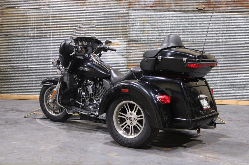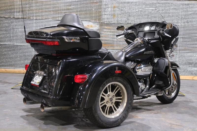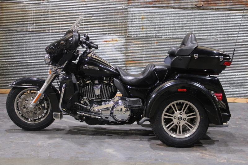 The 2020 H-D Tri Glide Ultra is a distinctive and robust trike that combines the classic appeal of Harley-Davidson with the stability and comfort of a three-wheeled design. This used model, with an odometer reading of 10,039 miles, offers a unique riding experience that is both exhilarating and secure. Its striking exterior is finished in a sleek black with pinstripe detailing, giving it a bold and stylish appearance that is sure to turn heads on the road. ???