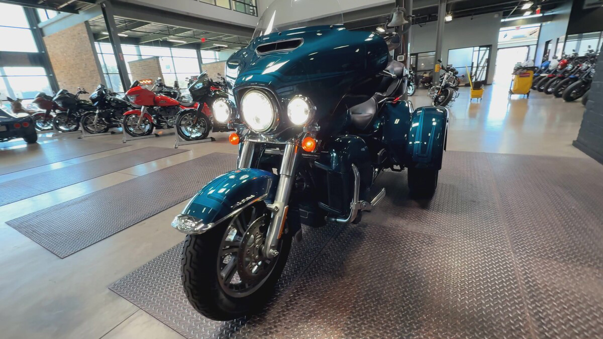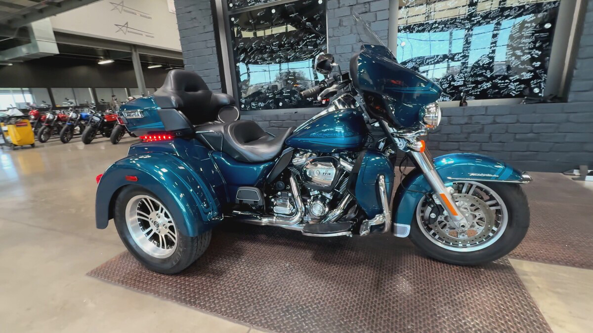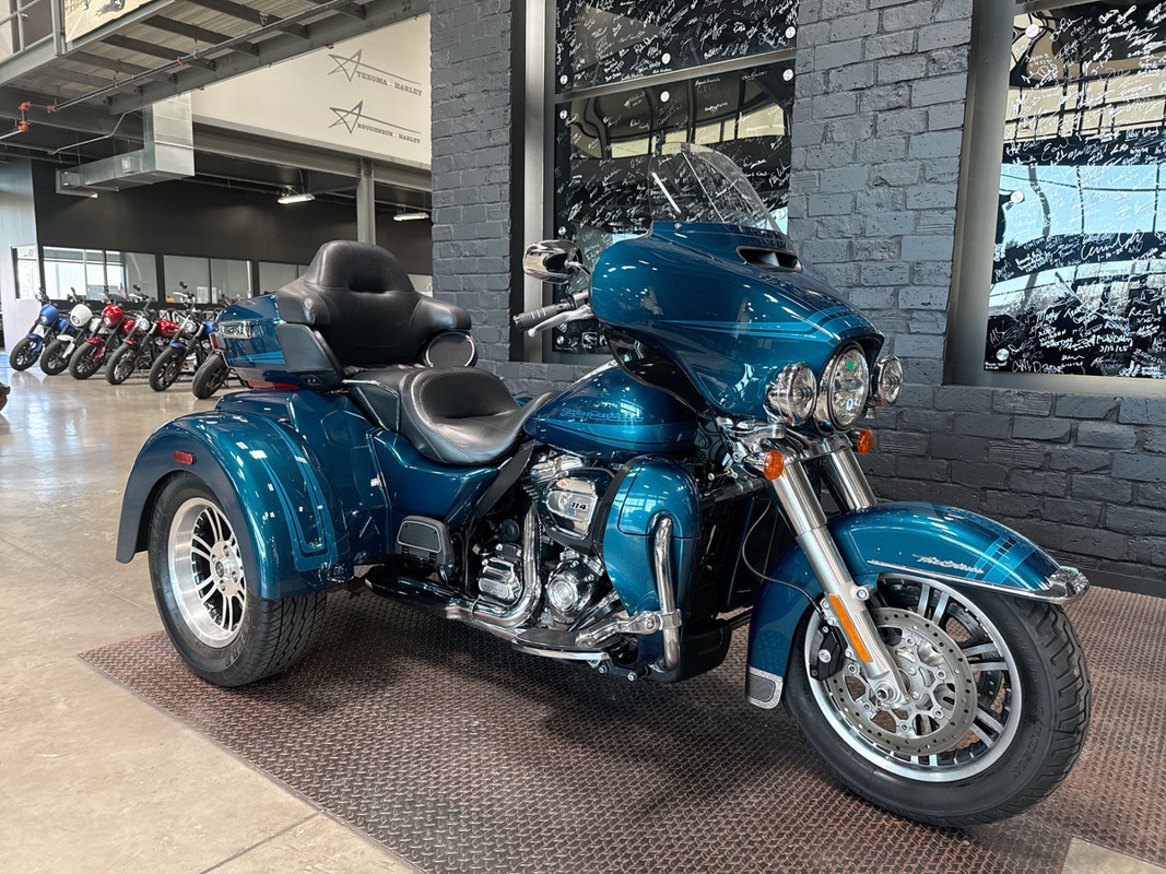 Discover the thrill of the open road with the 2020 Harley-Davidson Tri Glide Ultra, a remarkable machine that combines the legendary spirit of Harley-Davidson with the stability and comfort of a trike. This used model, boasting a beautiful Tahitian Teal exterior, is ready to deliver miles of adventure and freedom. With 21,000 miles on the odometer, this ride speaks to journeys well-traveled and more yet to come.