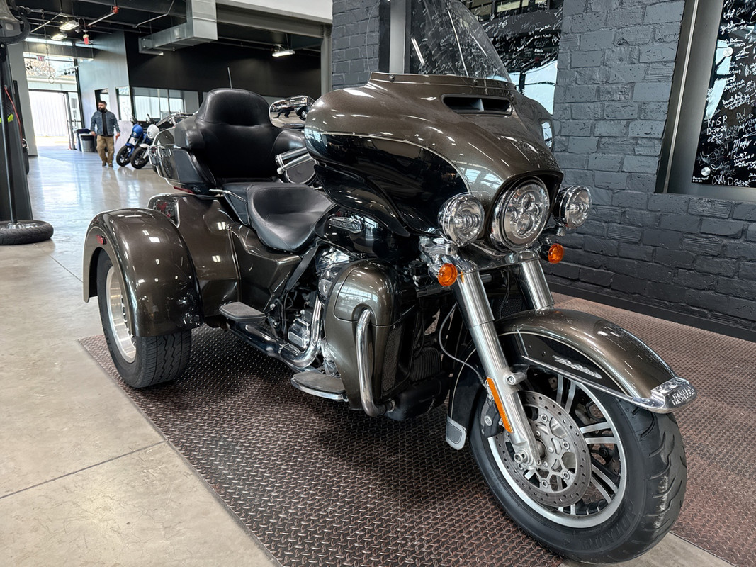 Experience the open road with the 2020 Harley-Davidson Trike, a masterpiece designed for those who crave adventure and freedom with an extra touch of stability. This used gem comes in a striking River Rock Gray and Black finish with a pinstripe that accentuates its bold contours.