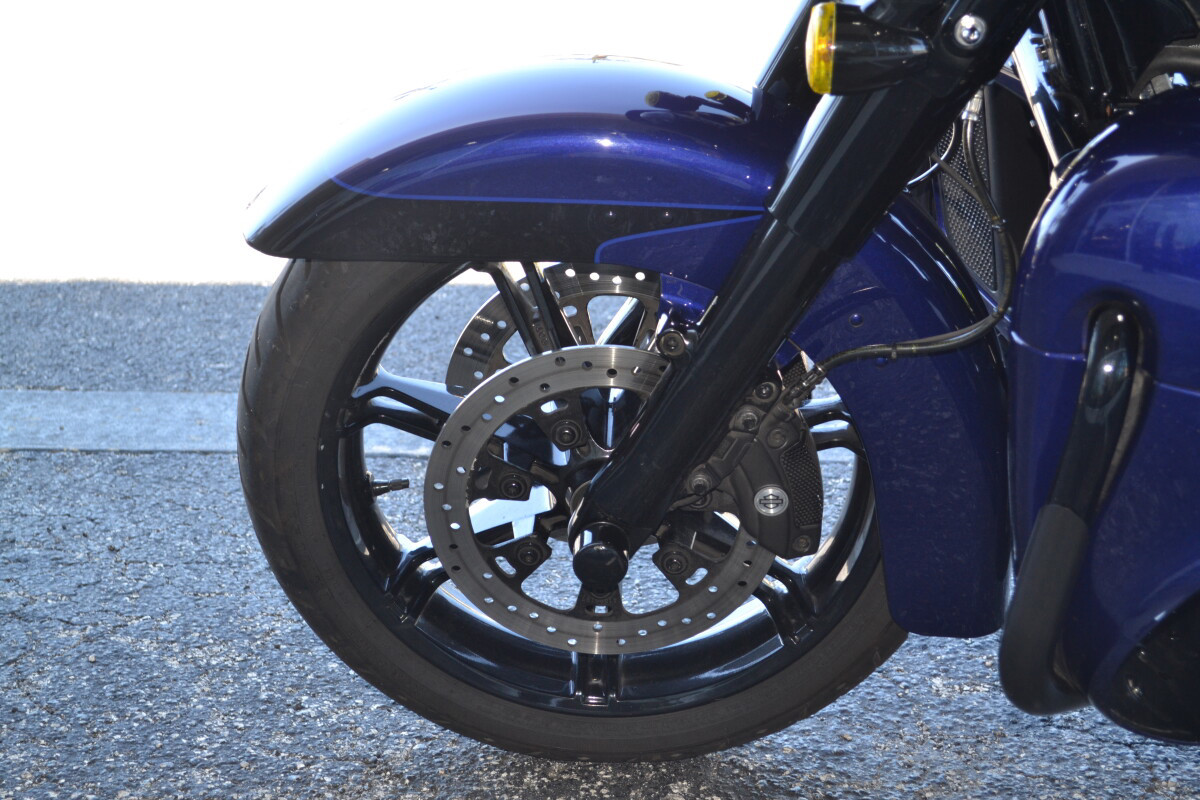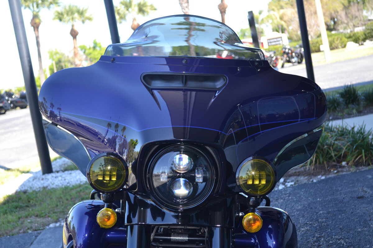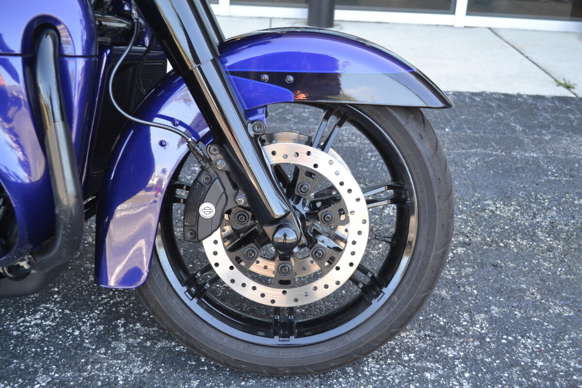 From its heated handgrips down to its Twin-Cooled Milwaukee-Eight 114 engine, the Ultra Limited motorcycle helps you find your balance in its marriage of machinery and technology. When you're away from the bike, H-D Connect service lets you keep an eye on its vitals and security from your phone, while the integrated BOOM! Box GTS infotainment system keeps you plugged in for long rides. Need your bike to express your dark side? Check out the new bold black finish that engulfs the entire bike, from its wind-cutting, vented batwing fairing back to its roomy Tour-Pak carrier.