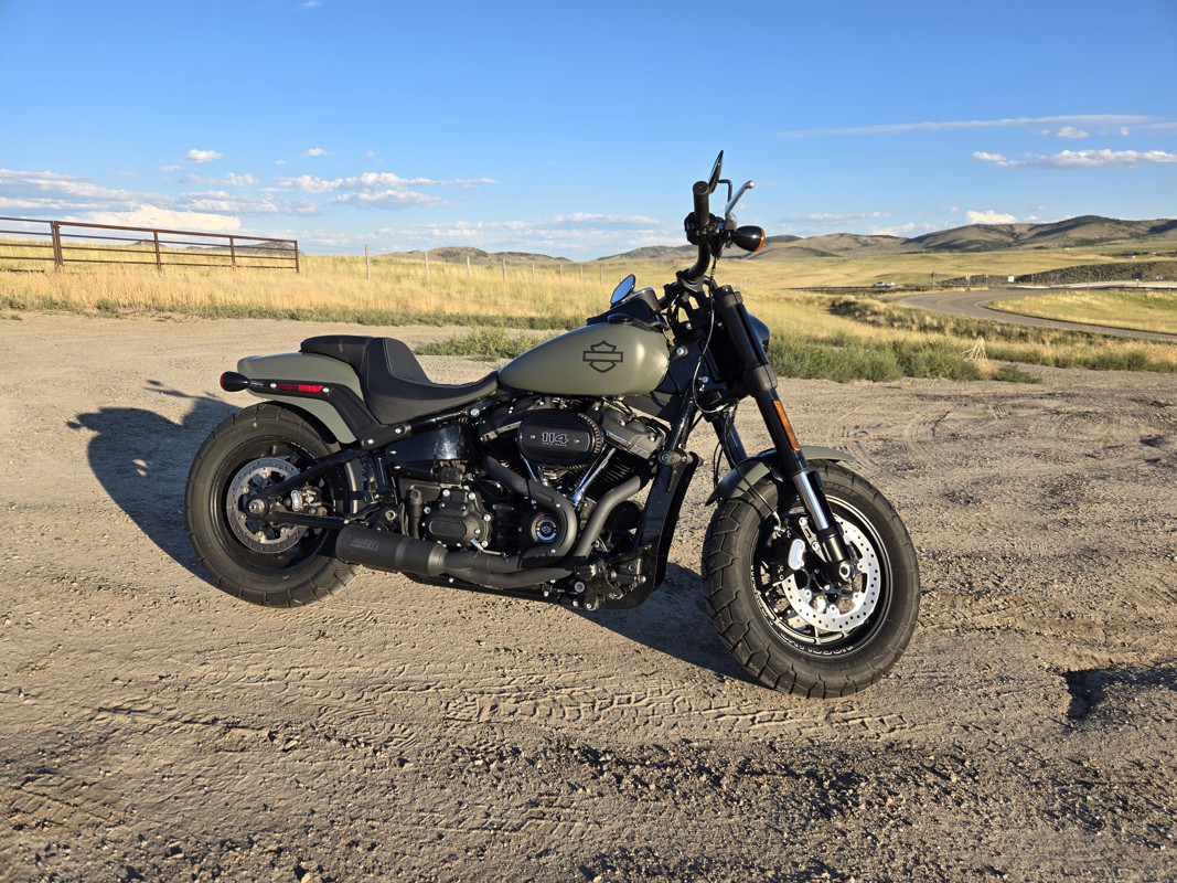 This 2021 Fat Bob has the adjustable softtail rear suspension, aftermarket crash bar and Vances & Hines High Output Exhaust.