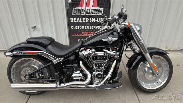 2021 Harley-Davidson® Fat Boy® 114The original fat custom icon, now with bright chrome finishesFeatures may include:THIS IS THE RIGHT BIKE FORHot rod riders who like satin chrome and a steamroller stanceCommanding the road with fat tires and a squared-up headlampMilwaukee-Eight® 114 V-Twin engine and Lakester disc wheelsMILWAUKEE-EIGHT® BIG TWIN ENGINEA powerful, smooth-running engine with crisp throttle response and a pure, soul-satisfying rumble.SOFTAIL® FRAMEThe frame retains the classic Softail® lines, but its lightweight design and stiffness translate to a responsive ride unlike anything you’ve felt before.SATIN CHROME FINISHESAn all-you-can eat portion of sculpted satin chrome gives the Fat Boy® motorcycle a look that’ll make a big impact.STEAMROLLER STANCEA muscular look thanks to solid-disc Lakester wheels wrapped in the widest front tire we’ve ever offered from the factory at 160mm combined with a rear tire at 240mm.SIGNATURE LED FORWARD LIGHTINGDarkness-defying lighting that gives you great visibility at night.HIGH PERFORMANCE FRONT SUSPENSIONSophisticated suspension technology provides the performance of a racing-style cartridge fork for reduced weight with linear damping characteristics.HIGH PERFORMANCE REAR MONO SHOCKEasily adjustable mono-shock rear suspension allows for dynamic cornering while preserving the hardtail look.