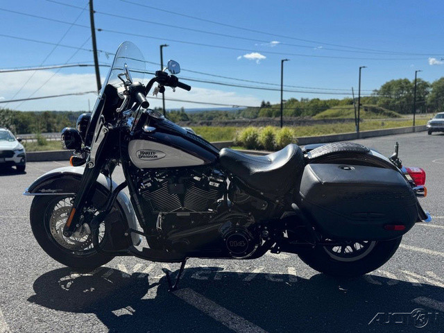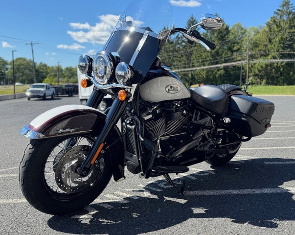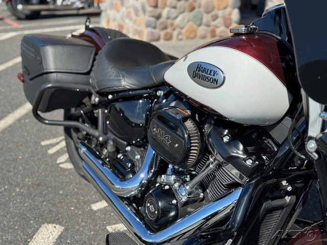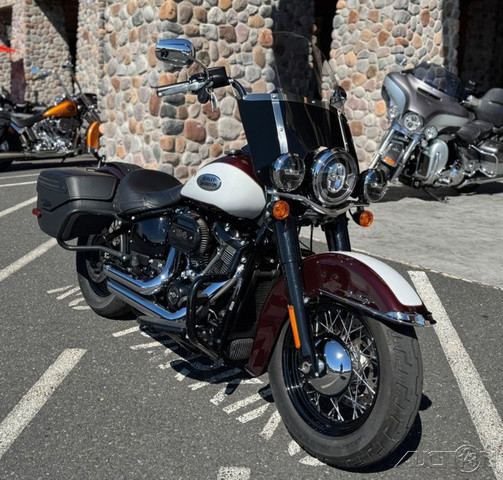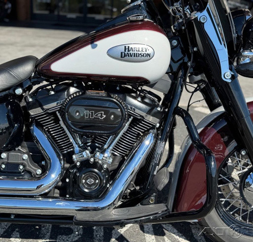 2021 Harley-Davidson® Heritage Classic 114The quintessential American cruiser. Showstopping vintage details and pure rock and roll style.Features May IncludeTHIS IS THE RIGHT BIKE FORRiders ready to chase excitement across state linesHighway riding with full fenders and detachable windscreenMilwaukee-Eight® 107 or 114 V-Twin engine and steel laced wheelsMILWAUKEE-EIGHT® BIG TWIN ENGINEA powerful, cool-running engine with crisp throttle response and a pure, soul-satisfying rumble.SOFTAIL® FRAMEThe frame retains the classic Softail® lines, but its lightweight design and stiffness translate to a responsive ride unlike anything you’ve felt before.A DARK CLASSIC WITH MODERN EDGEDripping with gangster-era style and vintage details. If Bonnie and Clyde rode a Harley® motorcycle, this would be the one.SIGNATURE LED FORWARD LIGHTINGDarkness-defying lighting that gives you great visibility at night.LOCKABLE AND SEALED SADDLEBAGSA sleek look on the outside and roomy on the inside with enough space to stash your riding essentials. The lids open with one touch.DETACHABLE WINDSCREENGo from touring to cruising in a heartbeat. Leave the screen on for a clean envelope of air over the long haul. Or remove it in seconds for a completely new look and ride. HIGH PERFORMANCE REAR MONO SHOCKEasily adjustable mono-shock rear suspension allows for dynamic cornering capability while preserving the hardtail look.