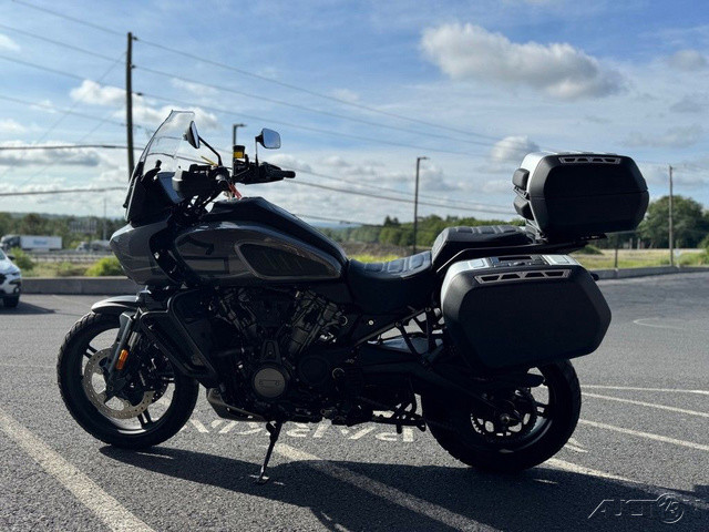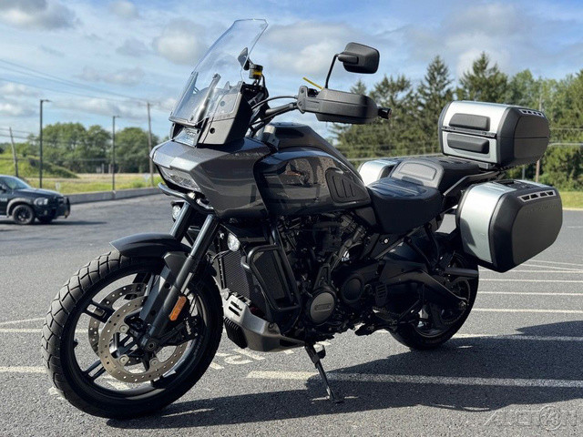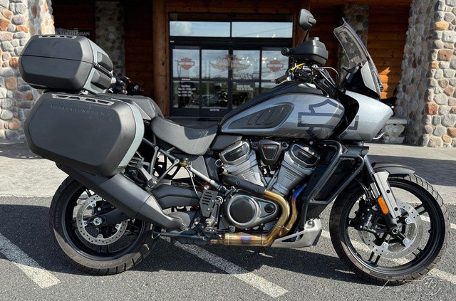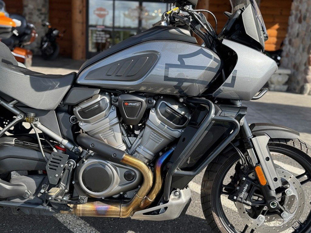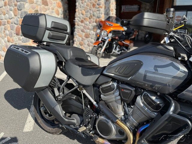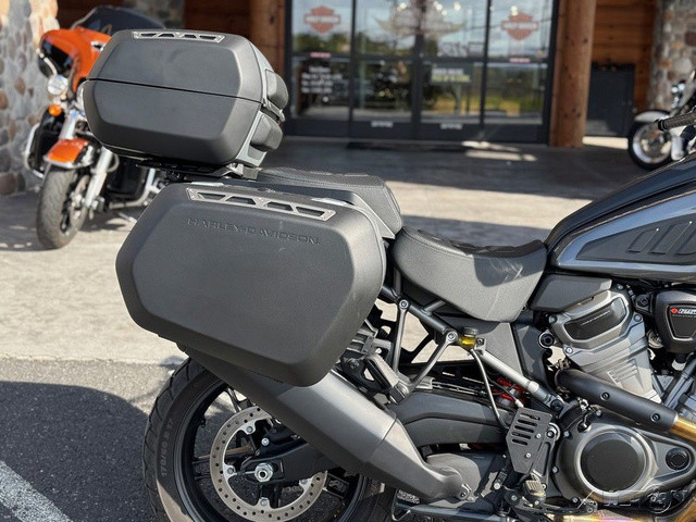 2021 Harley-Davidson® Pan America™ 1250 SpecialThe Pan America™ 1250 Special motorcycle is our premier two-wheel multi-tool built to endure, designed to explore, and engineered for adventure.Enthusiasts who require top-of-the-line comfort and performanceFor riders who see touring as detouring – on road and offRiders looking for power, tech, and capability – that can be used everyday with comfort and controlFeatures may include:We’re calling it Special for good reason. Designed to compete with the top-of-the-line ADV bikes in the segment, the 1250 Special is loaded with premium features.Semi-Active Front and Rear Suspension with Vehicle Load ControlTire Pressure Monitoring System (TPMS)Center StandMulti-Position Rear Brake PedalBrush GuardAluminum Skid PlateDaymaker® Signature Adaptive HeadlampHand Wind DeflectorsHeated Hand GripsSteering DamperFactory Installed Option: Adaptive Ride HeightFactory Installed Option: Tubeless Laced WheelsAll-new Revolution® Max 1250 Engine For A New Generation of Iconic Bikes The next chapter in a century of legendary V-Twins is here. Revolution® Max is a liquid-cooled powertrain with over 145 horsepower, full of ample torque, and a surging powerband tuned to maximize rider control. Dual Purpose Powertrain The Revolution® Max 1250 is a structural component of the motorcycle chassis, eliminating a traditional frame —which significantly reduces overall weight and keeps handling taut. This is performance you can feel, with the center of gravity low and the chassis super rigid. Peak Performance Where It Counts Double Overhead Camshafts (DOHC) facilitate higher peak horsepower, and independent Variable Valve Timing (VVT) broadens the overall powerband and improves torque management. All this to say you’ll have as much low-end acceleration off the line and high-RPM horsepower you can twist.Adaptive Ride HeightRevolutionary SuspensionAdaptive Ride Height makes its debut on the Pan America 1250 Special. This factory-installed option unlocks confidence you can feel by lowering seat height when stopped, and maintaining a constant, optimum suspension sag at speed by adjusting preload while continuously sensing weight inputs.Semi-Active Front & Rear Suspension190mm (7.48 inches) travel on Showa® BFF™ (Balance Free Forks) fronts and a BFRC™ (Balanced Free Rear Cushion-lite) coil-over rear shock with electronic preload control and semi-active damping. The rear suspension incorporates a linkage system connecting the shock, swingarm, and frame which provides a progressive feel through the stroke.