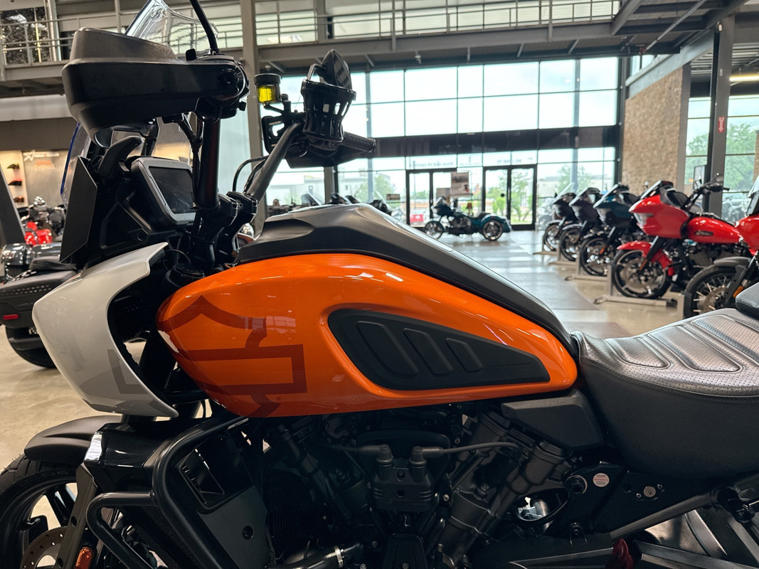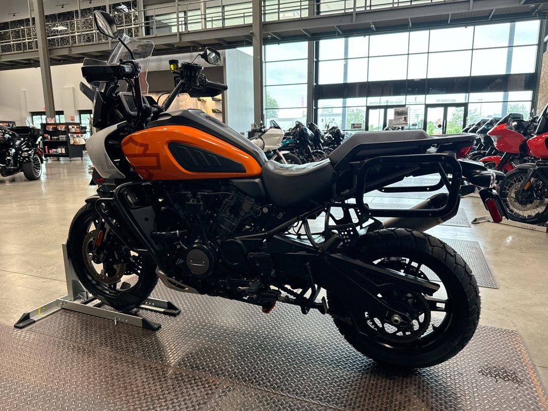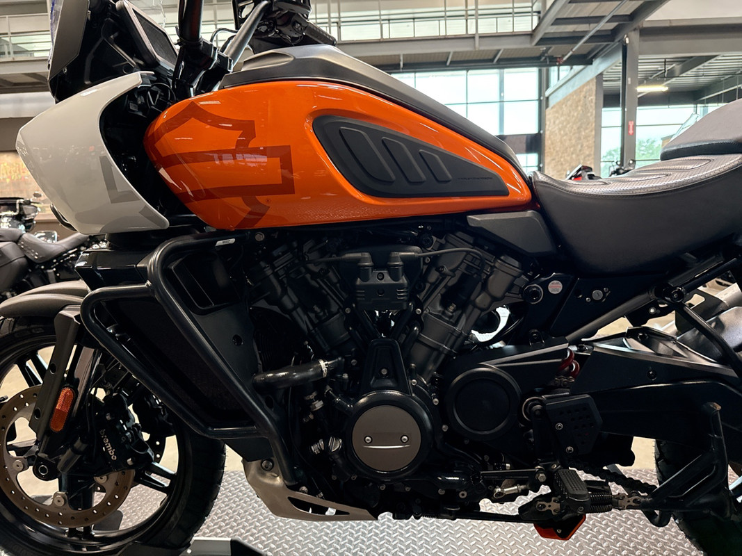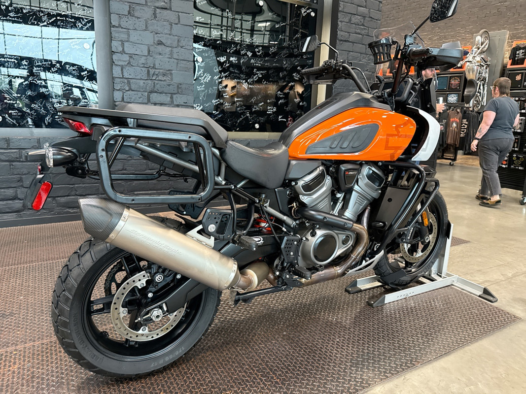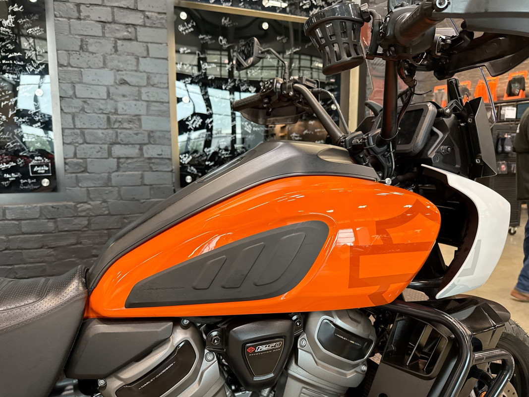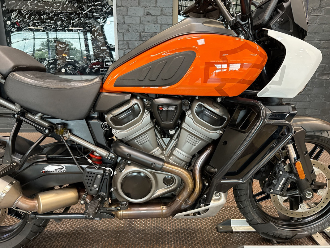 The 2021 HD Pan America Special is a striking motorcycle that embodies both adventure and style. This used touring bike is designed for those who crave the thrill of the open road and the freedom to explore new terrains. With its distinctive BAJA ORANGE/STONE WASHED WHITE exterior, it stands out in any crowd, offering a bold and adventurous look that is sure to turn heads wherever you go.