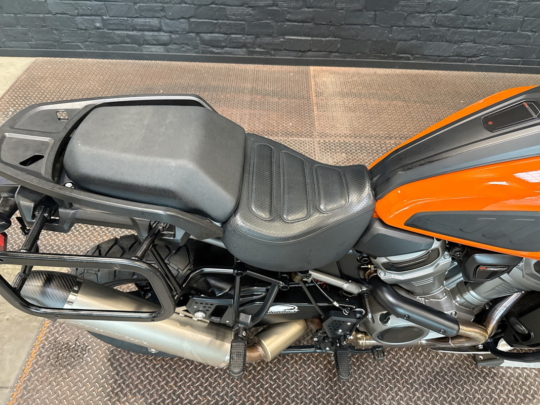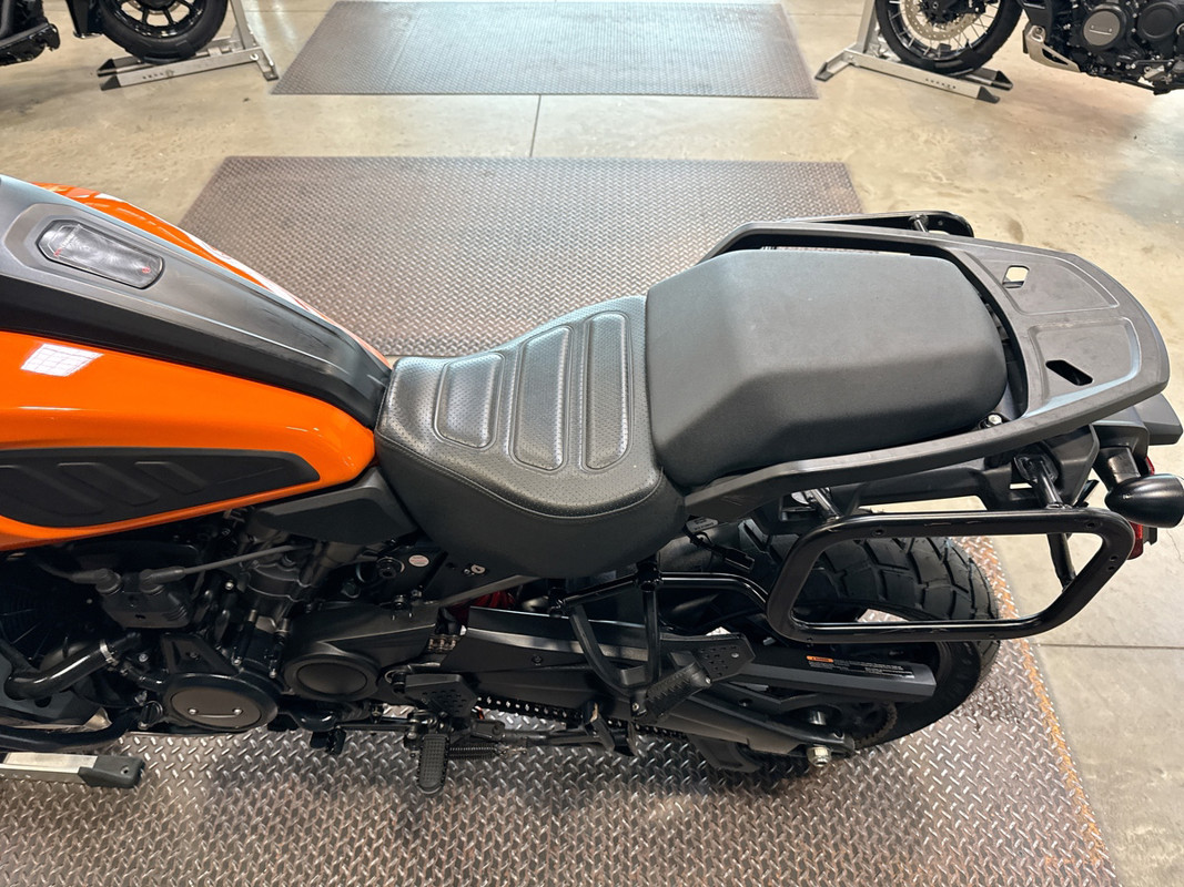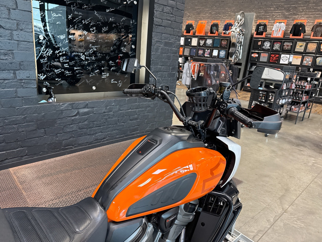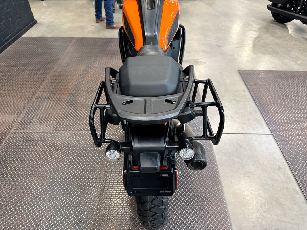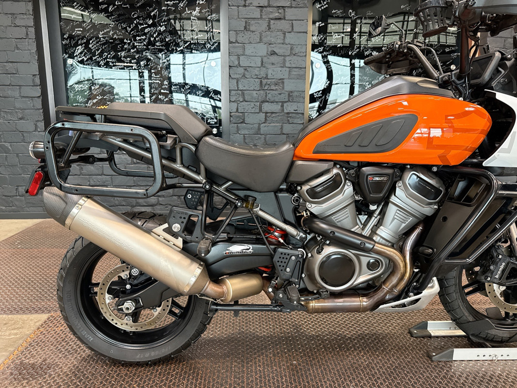The 2021 HD Pan America Special is a striking motorcycle that embodies both adventure and style. This used touring bike is designed for those who crave the thrill of the open road and the freedom to explore new terrains. With its distinctive BAJA ORANGE/STONE WASHED WHITE exterior, it stands out in any crowd, offering a bold and adventurous look that is sure to turn heads wherever you go.