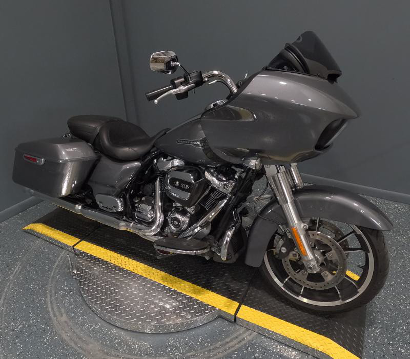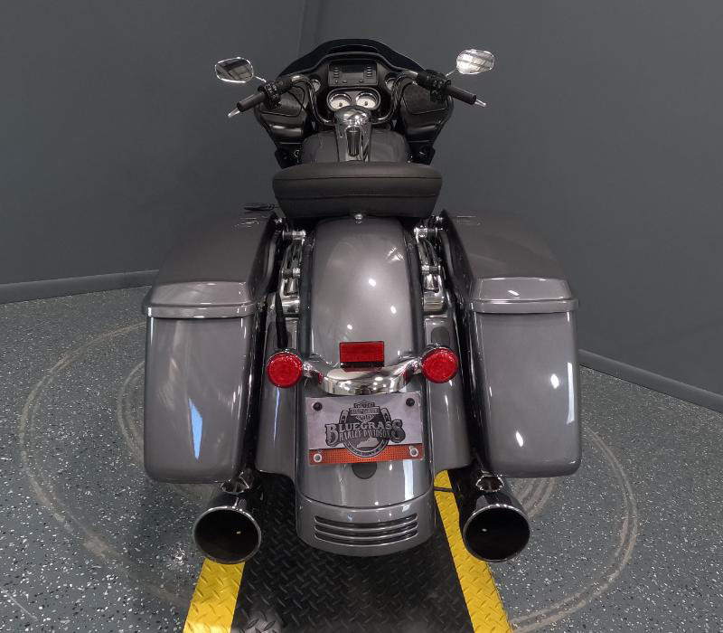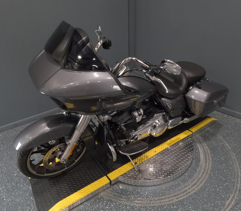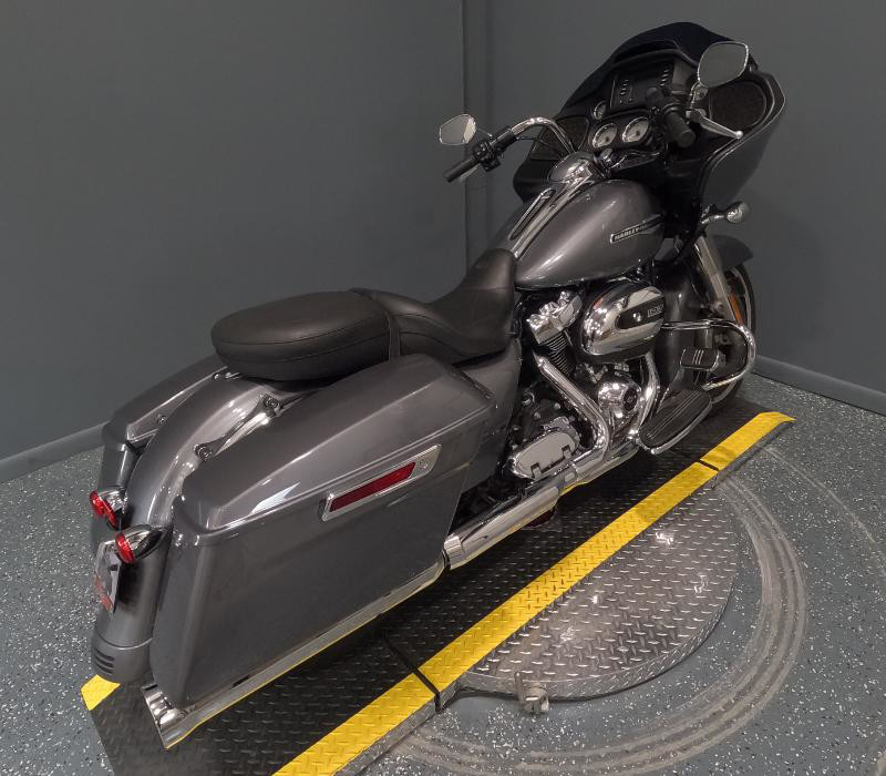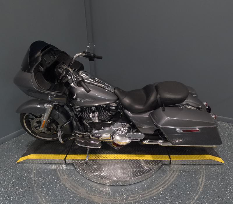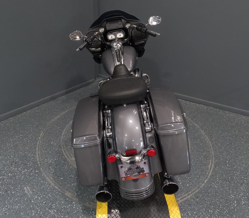 The 2021 H-D Road Glide Touring is a striking motorcycle that combines classic design with modern features, making it a standout choice for enthusiasts who appreciate both style and performance. This used model, with an odometer reading of 24,065 miles, is finished in a sophisticated Gauntlet Gray Metallic, which adds a touch of elegance and a hint of mystery to its robust appearance.