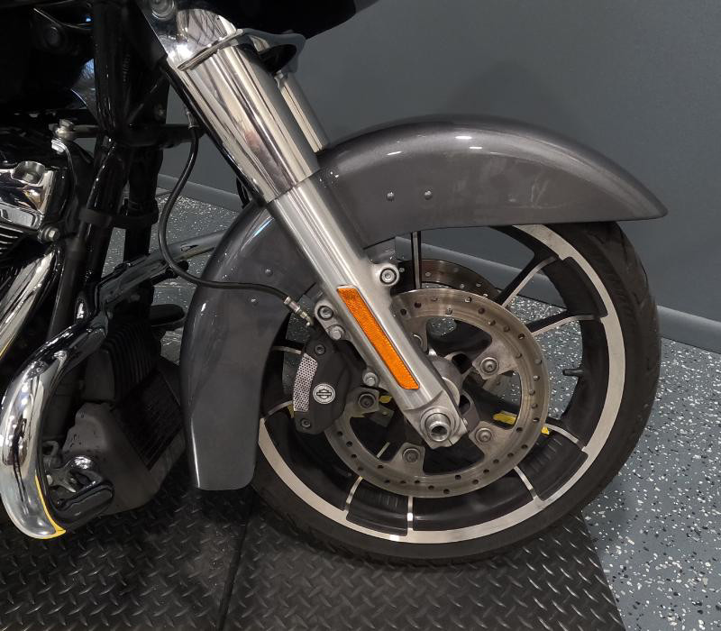 The exterior of the Road Glide is accentuated by chrome details, which add a touch of classic Harley-Davidson flair. The 5-spoke black ABS wheels not only enhance the bike's aesthetic appeal but also contribute to its stability and handling, ensuring a safe and comfortable ride.