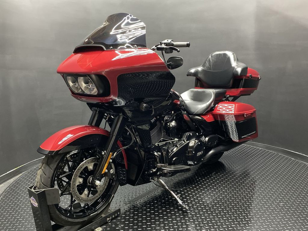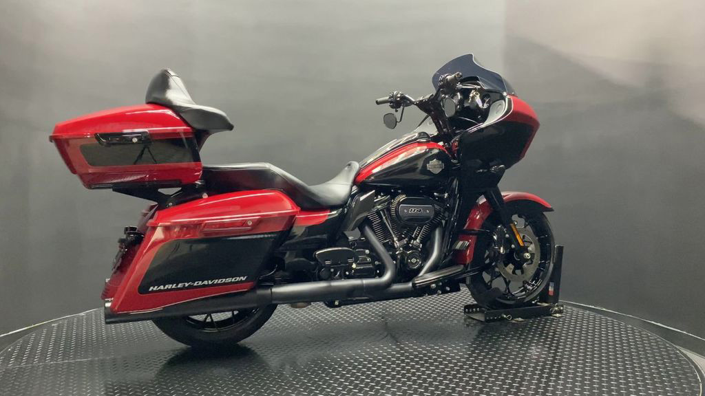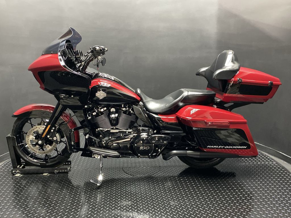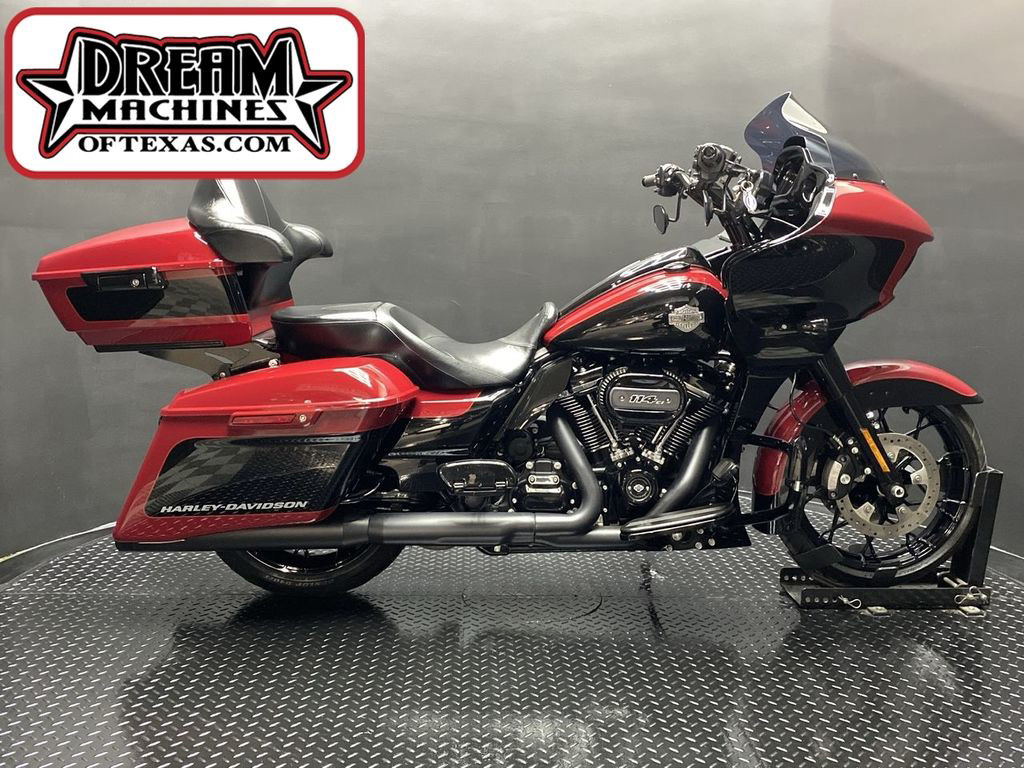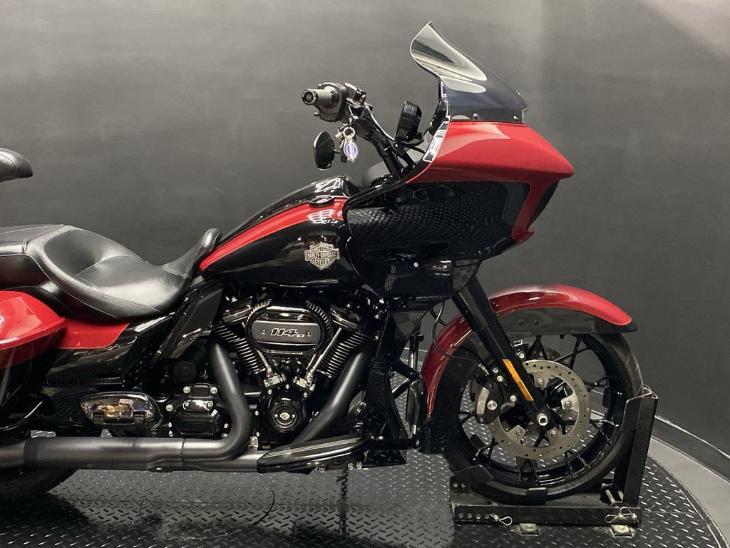 YOU ARE LOOKING AT A 2021 HARLEY DAVIDSON ROAD GLIDE SPECIAL (FLTRXS) WITH 12,240 MILES ON IT. IT IS BILLIARD RED AND VIVID BLACK IN COLOR AND POWERED BY A 1868CC (114") FUEL INJECTED MILWAUKEE EIGHT ENGINE AND 6 SPEED TRANSMISSION. THE BIKE COMES WITH ABS BRAKES, CRUISE CONTROL, NAVIGATION, 2 KEYS, 1 FOB, AND FACTORY SECURITY SYSTEM. THERE ARE SOME EXTRAS ON THE BIKE WHICH INCLUDE RINEHART SLIP-ON MUFFLERS ($584.95), TOUR TRUNK ($1,049.95), HIGHWAY PEGS ($179.95), PASSENGER FLOORBOARDS ($409.95), HAMMOCK SEAT ($580.95), KLOCKWERKS WINDSHIELD ($179.95), KRAUS RISERS AND BARS ($1,295.95), AND GRIPS ($79.95). THERE ARE NO SCRATCHES, DENTS, OR DINGS THAT I CAN FIND WITH THE EXCEPTION OF SMALL TOUCHUPS ON THE FRONT FENDER AND TANK. THE CHROME AND ALUMINUM ARE IN GOOD CONDITION WITH THE EXCEPTION OF A SMALL IMPRESSION ON THE DASH. THE TIRES HAVE GOOD TREAD LEFT ON THEM.