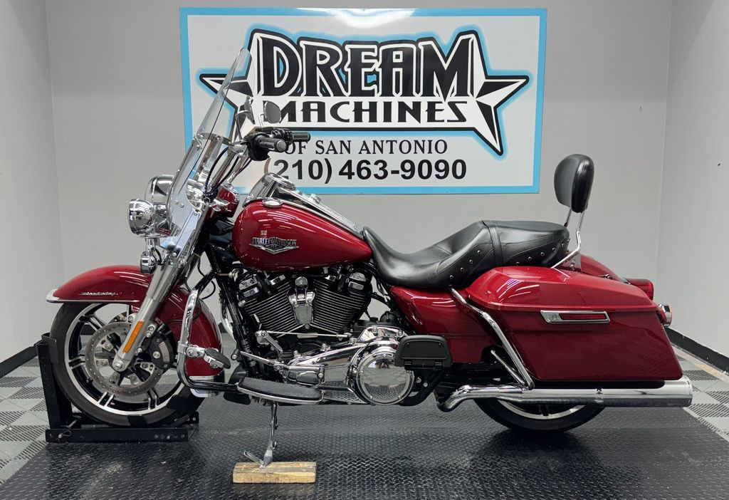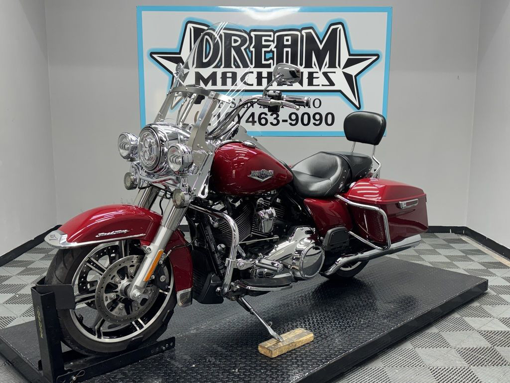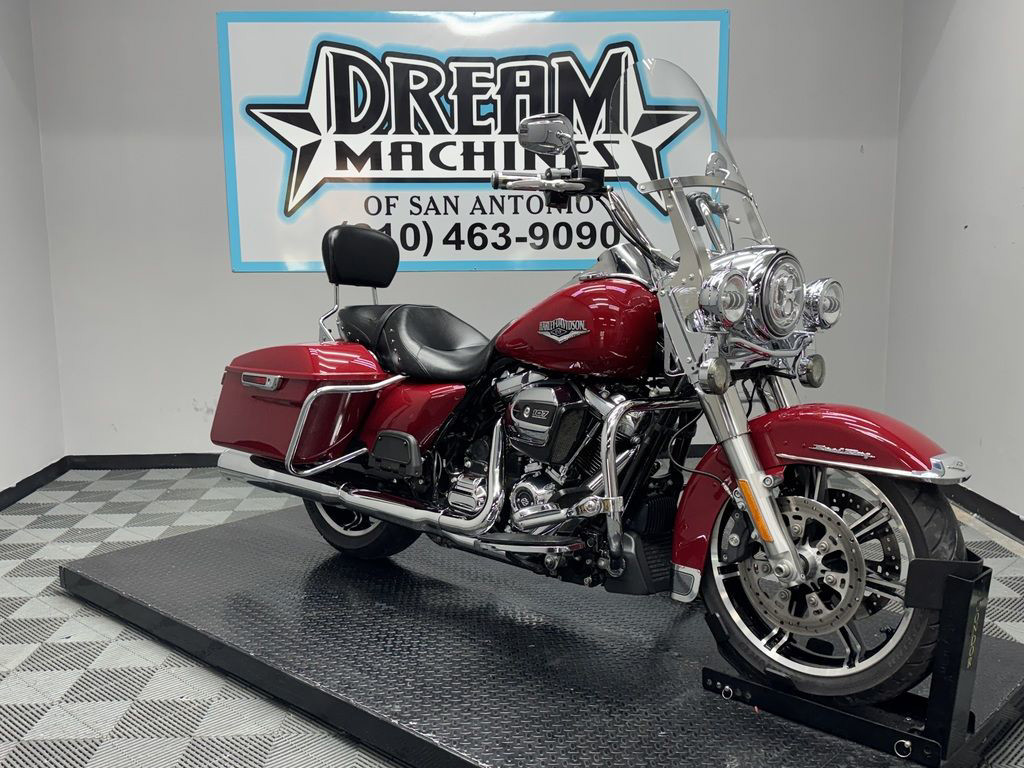 *BOOK VALUE IS $14,110 SHIPPING, LEASING, FINANCING AND EXTENDED WARRANTY MAY BE AVAILABLE! YOU ARE LOOKING AT A 2021 HARLEY DAVIDSON ROAD KING (FLHR) WITH 21,457 MILES ON IT. IT IS BILLIARD RED IN COLOR AND POWERED BY A 1746CC (107") FUEL INJECTED MILWAUKEE EIGHT ENGINE AND 6 SPEED TRANSMISSION. THE BIKE COMES WITH ABS BRAKES, CRUISE CONTROL, 2 KEYS, 2 FOBS, AND FACTORY SECURITY SYSTEM. THERE ARE SOME EXTRAS ON THE BIKE WHICH INCLUDE VANCE & HINES SLIP-ON MUFFLERS ($424.95), PASSENGER BACKREST ($264.95), LED HEADLIGHT ($399.95), LED PASSING LAMPS ($199.95), HIGHWAY PEGS ($179.95), AND GRIPS ($79.95). THERE ARE NO SCRATCHES, DENTS, OR DINGS THAT I CAN FIND WITH THE EXCEPTION OF SCRATCHES ON THE REAR FENDER AND TANK. THE CHROME AND ALUMINUM ARE IN GOOD CONDITION WITH THE EXCEPTION OF SCRATCHES ON THE DASH AND WINDSHIELD. THE TIRES HAVE GOOD TREAD LEFT ON THEM.