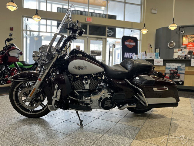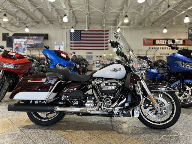 2021 Harley-Davidson® Road King®A stripped-down highway legend with classic chrome styling and modern touring performance.Features may include:THIS IS THE RIGHT BIKE FORRiders looking to burn through miles with authorityNeo-classic style with Hiawatha headlamp and nacelleMilwaukee-Eight® 107 V-Twin engine and one-touch saddlebagsMilwaukee-Eight® 107 Engine A powerful, smooth-running engine with crisp throttle response and a pure, soul-satisfying rumble.Reflex™ Linked Brembo® Brakes with Standard ABSDesigned to help prevent the wheels from locking under braking to assist the rider in maintaining control when braking in a straight-line. ABS operates independently on front and rear brakes to keep the wheels rolling and help prevent uncontrolled wheel lock in urgent situations.Hiawatha Headlamp and NacelleBorn in the ’60s, when chrome ruled the streets. Big and commanding, it’s built with the latest in materials and technology for a long distance high beam and wide low beam.Responsive Suspension High-performing front and rear suspension, with easily hand-adjustable rear shocks put you in control of a plush ride.Slicer II Cast AluminumA 18-inch front and 18-inch rear Slicer II wheel to match in the back are stunning and lightweight.One-Touch Opening SaddlebagsTight on the outside, roomy on the inside. The hinges are simple and clean and the lids open with one touch of one hand.